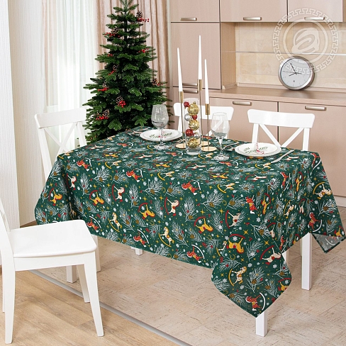 «Лошадки» – снежная сказка на Вашей кухне! Скатерть на стол на новый год из рогожки создаст праздничную атмосферу и добавит нотки уюта. Изделие украшено очаровательным принтом в виде ёлочных игрушек, родом из детства. Лошадки-качалки дарят ностальгию и приятные эмоции.