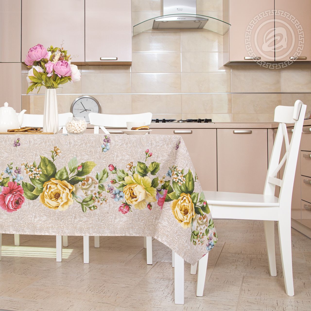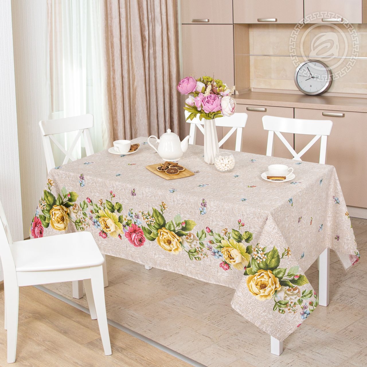 Скатерть рогожка / Пионы