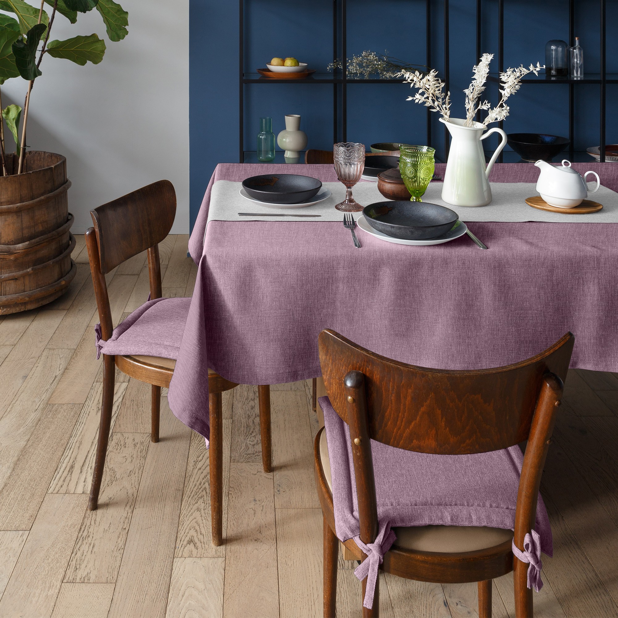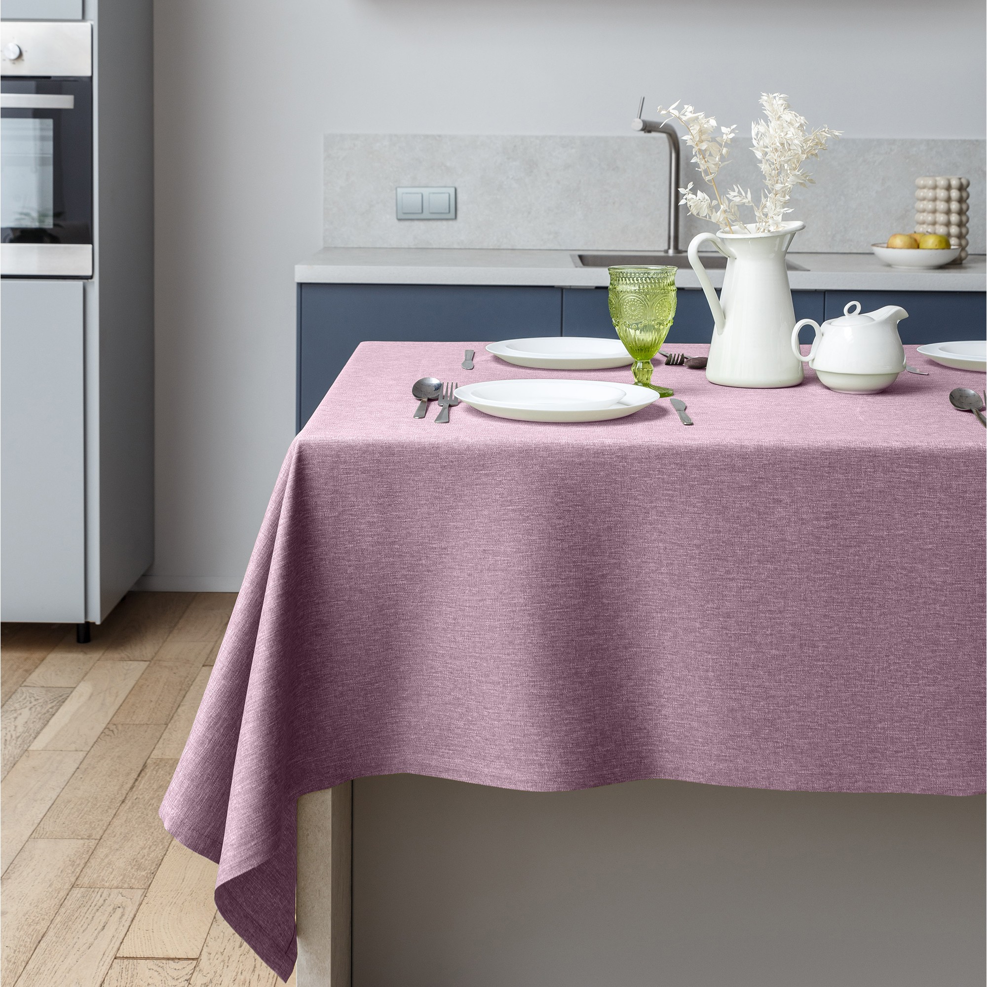 Коллекция скатертей «Волшебная ночь» сделают кухонный интерьер по-настоящему уникальным и, в то же время, модным. Цветовая гамма коллекции подобрана в глубоких спокойных оттенках и способна легко дополнить любой кухонный интерьер, придавая ему целость и завершённость. Теперь, одним взмахом руки, кухня подстраивается под любое Ваше настроение! Ткань рогожка является олицетворением так называемого «крафта». Красоту таких тканей обеспечивает сама фактура и меланжевый эффект (неровный окрас пряжи). Материал повторяет структуру ткани из натурального льна, но обладает дополнительными полезными свойствами: высокой износостойкостью, прочностью и устойчивостью к запахам.
