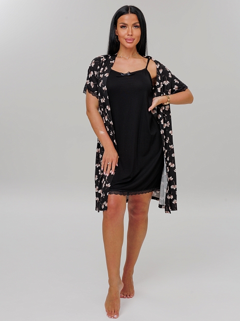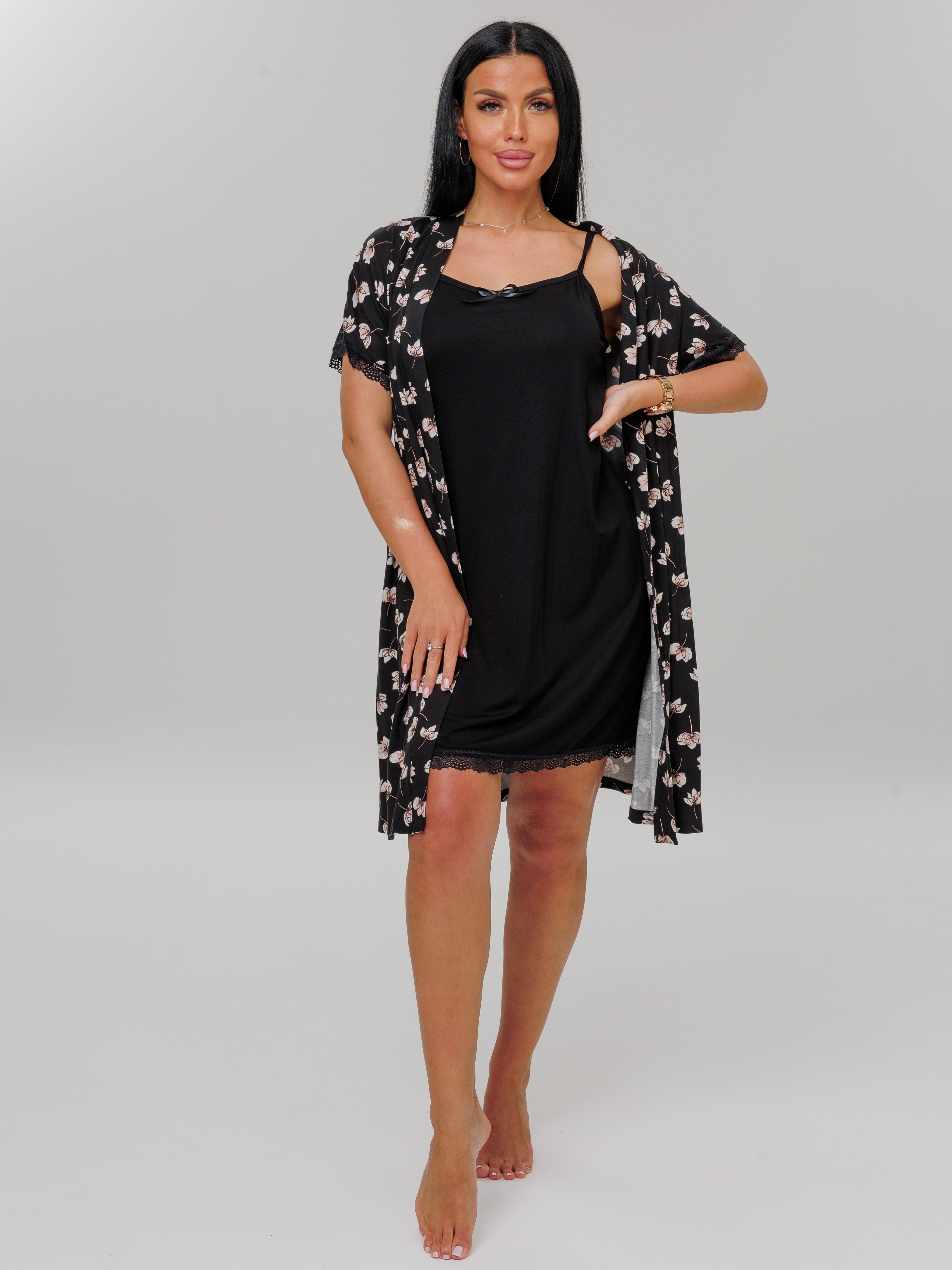 Женский комплект Сор-14(Вис) + Х-14(Вис) / Черный (цветы)