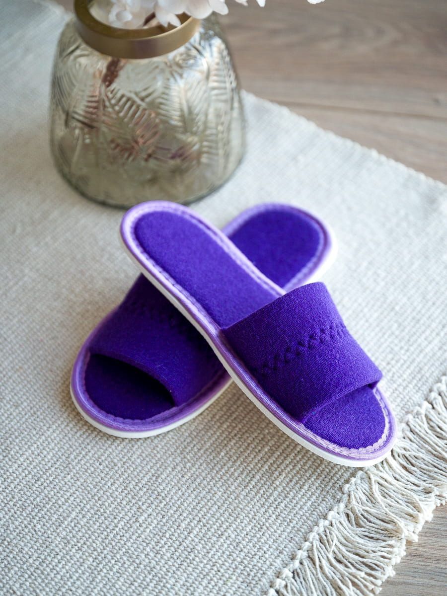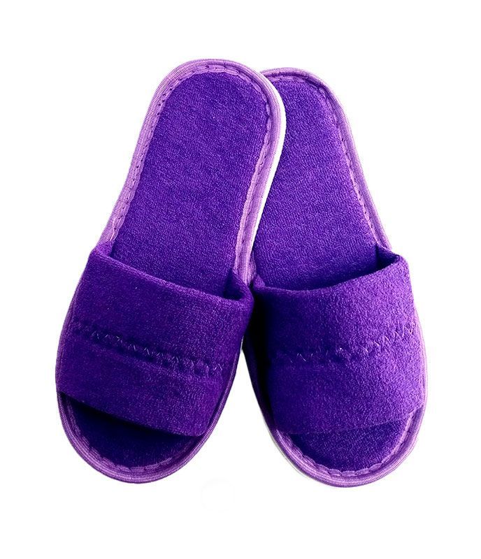 Тапочки фиолетовые с открытые мысом изготовлены из качественной натуральной махровой ткани с толстой подошвой. Рекомендованы к использованию в СПА-центрах, массажных салонах и гостиницах для удобства и комфорта клиентов.