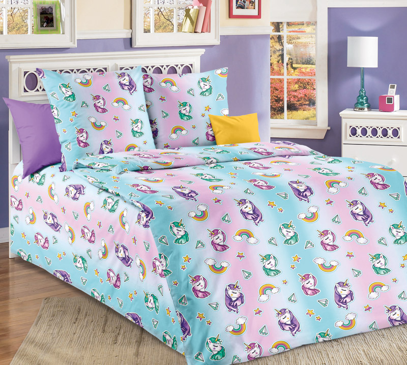 Расцветка пододеяльника, наволочек и простыни (на фото).