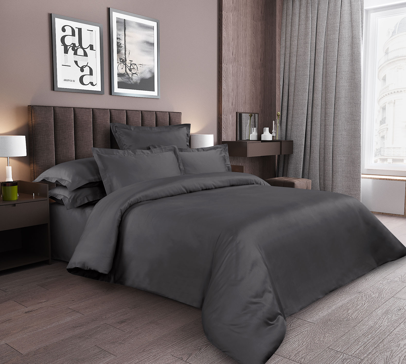 Ткань сатин Гладкокрашеный / Графитовый