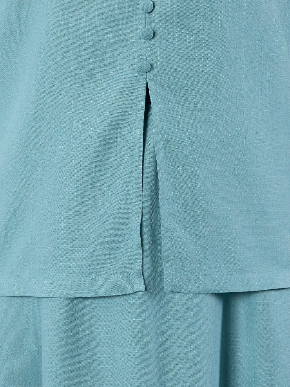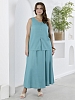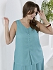 Блузка женская из гладкокрашеного тканого полотна, полуприталенного силуэта, без рукавов, с V-образной горловиной и вытачками в области груди. Перед состоит из двух частей, в шве соединения деталей разрез. От горловины до разреза пришиты декоративные пуговицы имитирующие застежку. Горловина и проймы окантованы основным материалом.