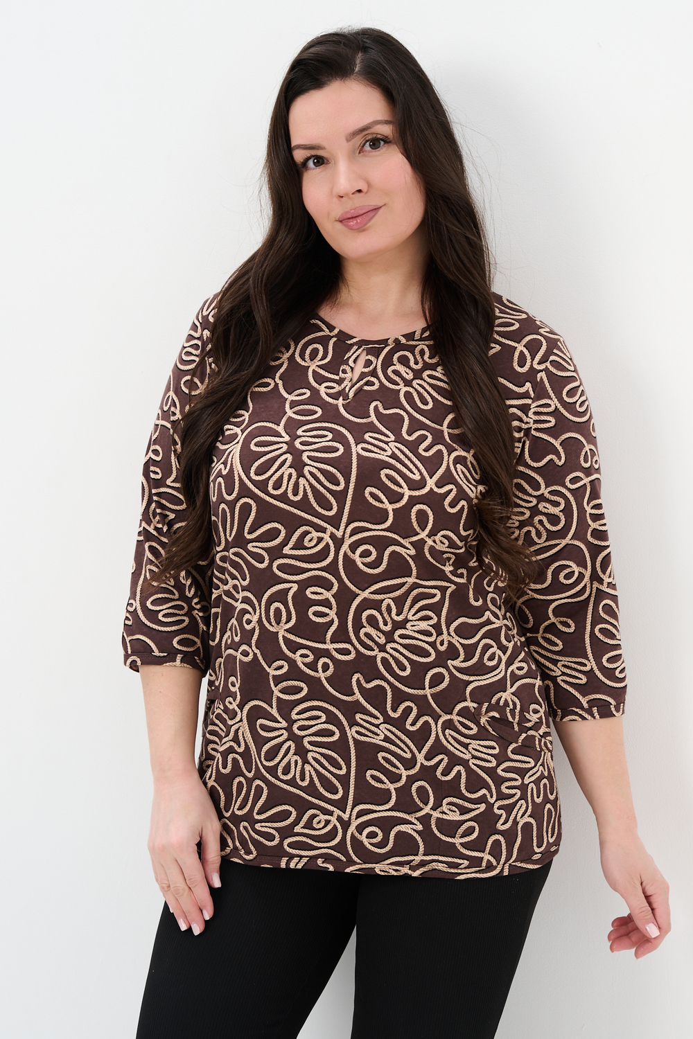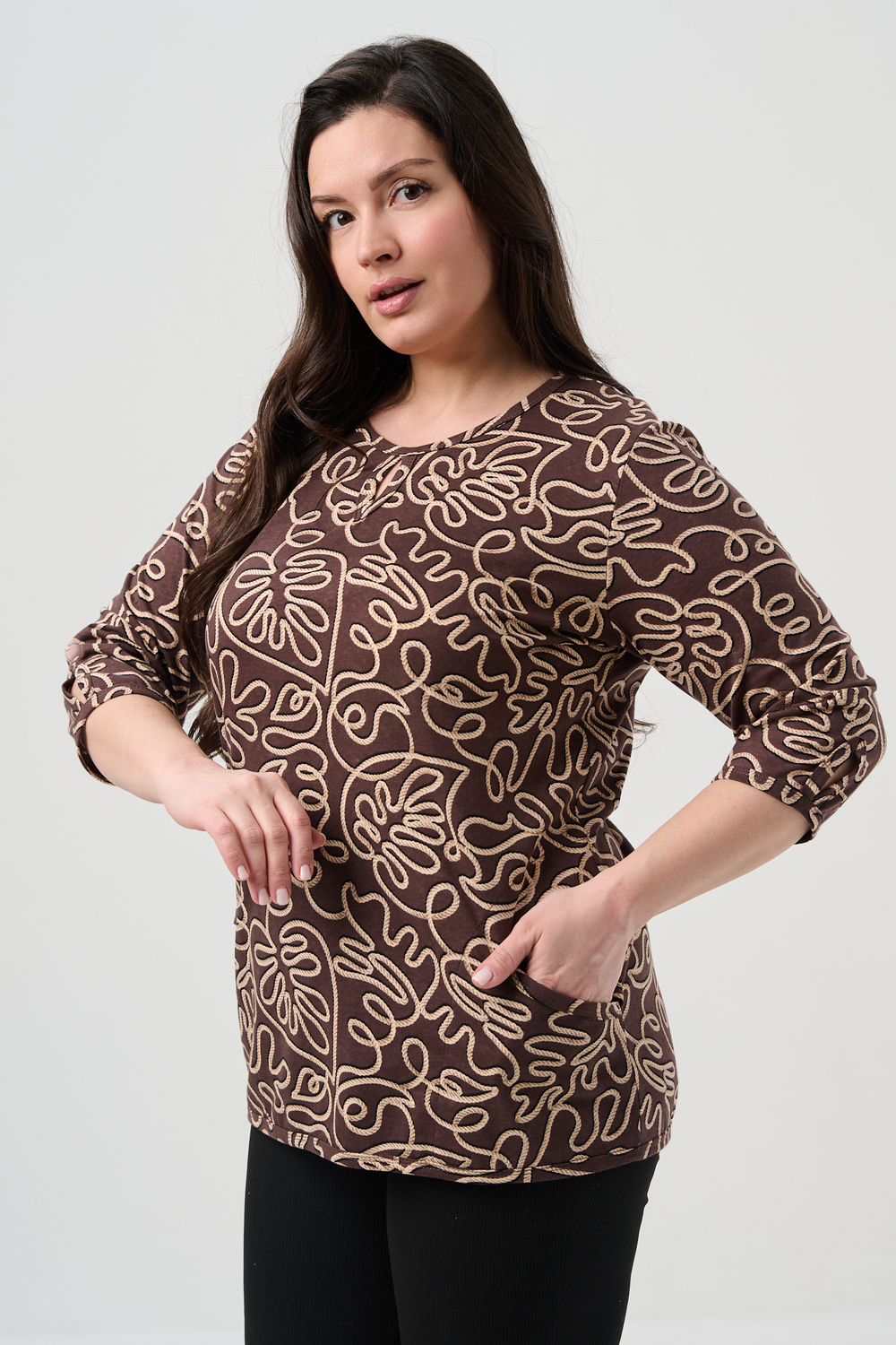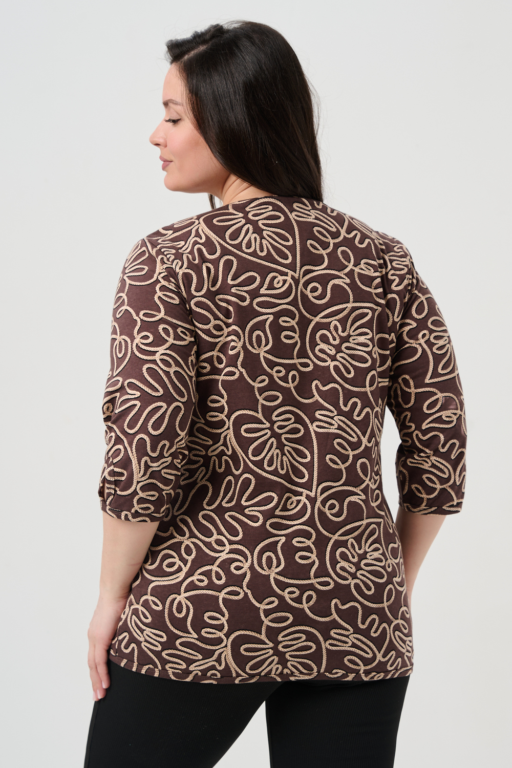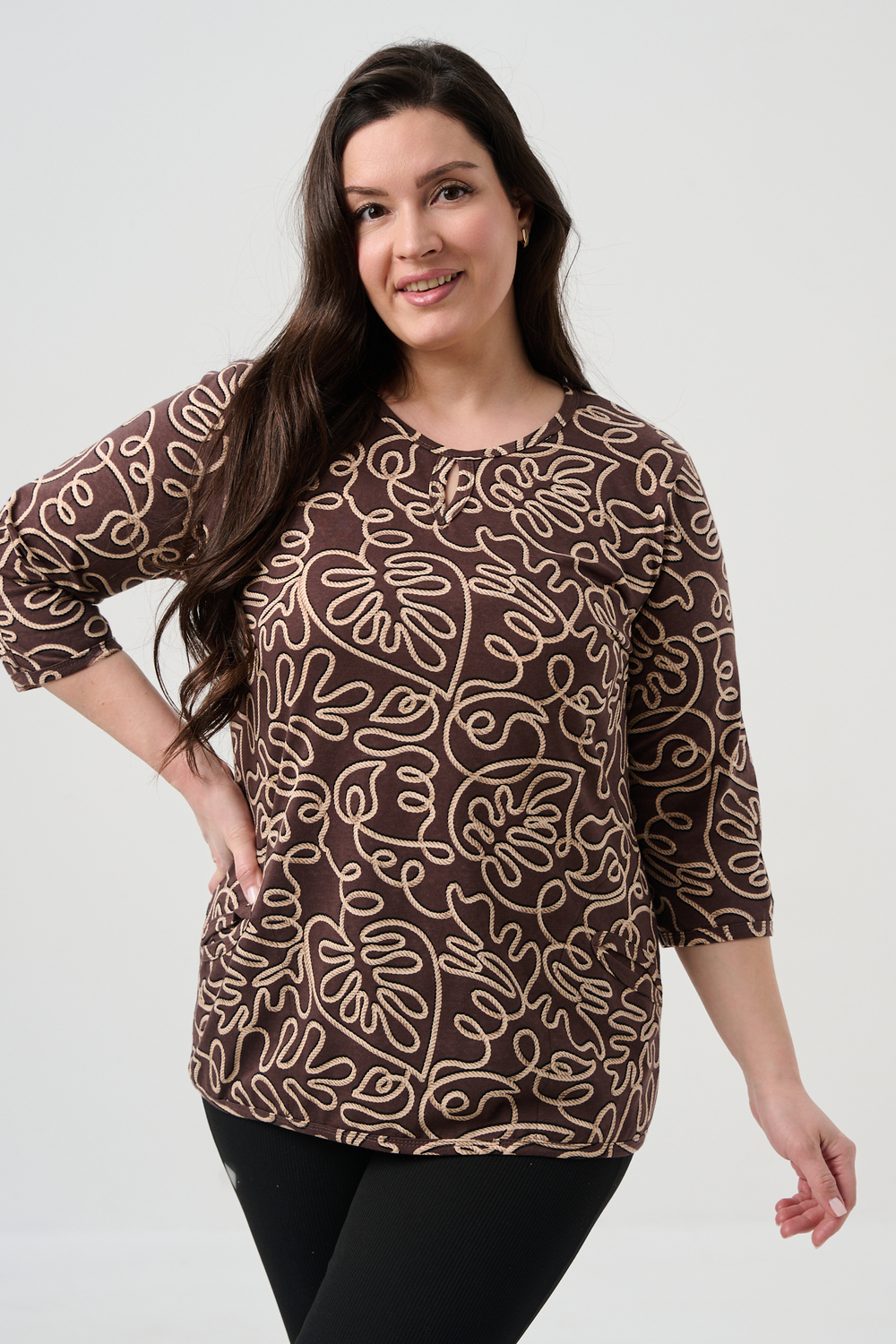 Универсальная базовая модель. Капелька на груди и на рукавах. Удобные внутренние карманы. Отличный вариант для женщин больших размеров. Благодаря своей оптимальной длине, рукаву 3/4, блузка обеспечивает универсальность и комфорт.