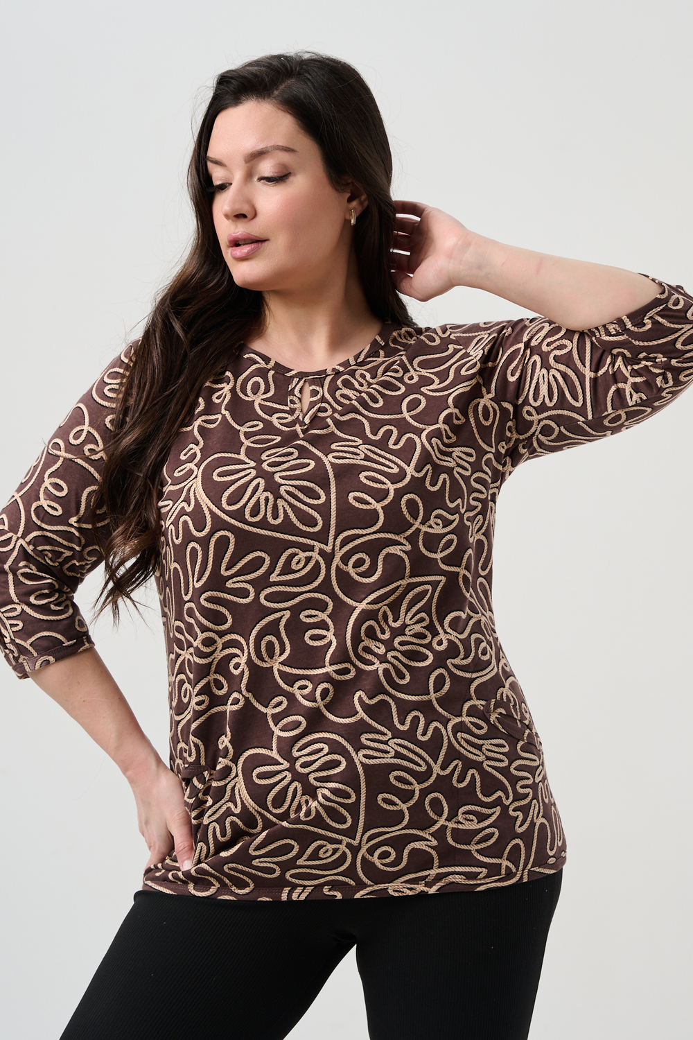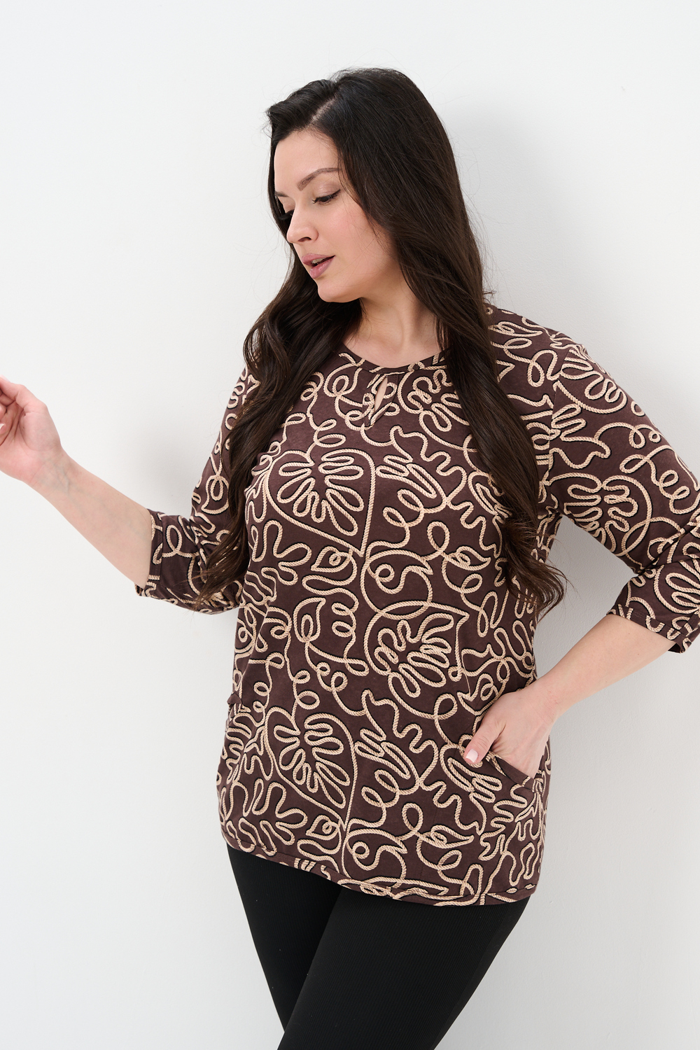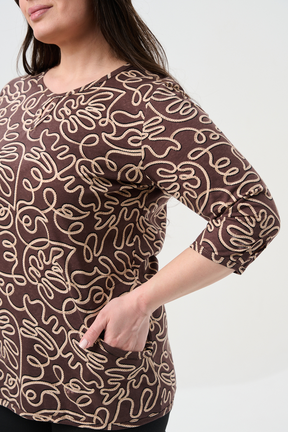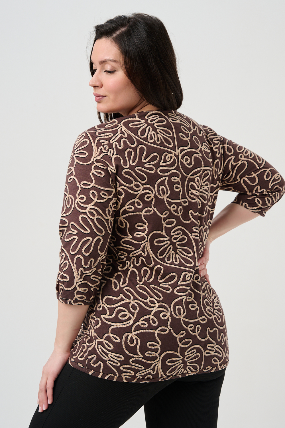 Универсальная базовая модель. Капелька на груди и на рукавах. Удобные внутренние карманы. Отличный вариант для женщин больших размеров. Благодаря своей оптимальной длине, рукаву 3/4, блузка обеспечивает универсальность и комфорт.