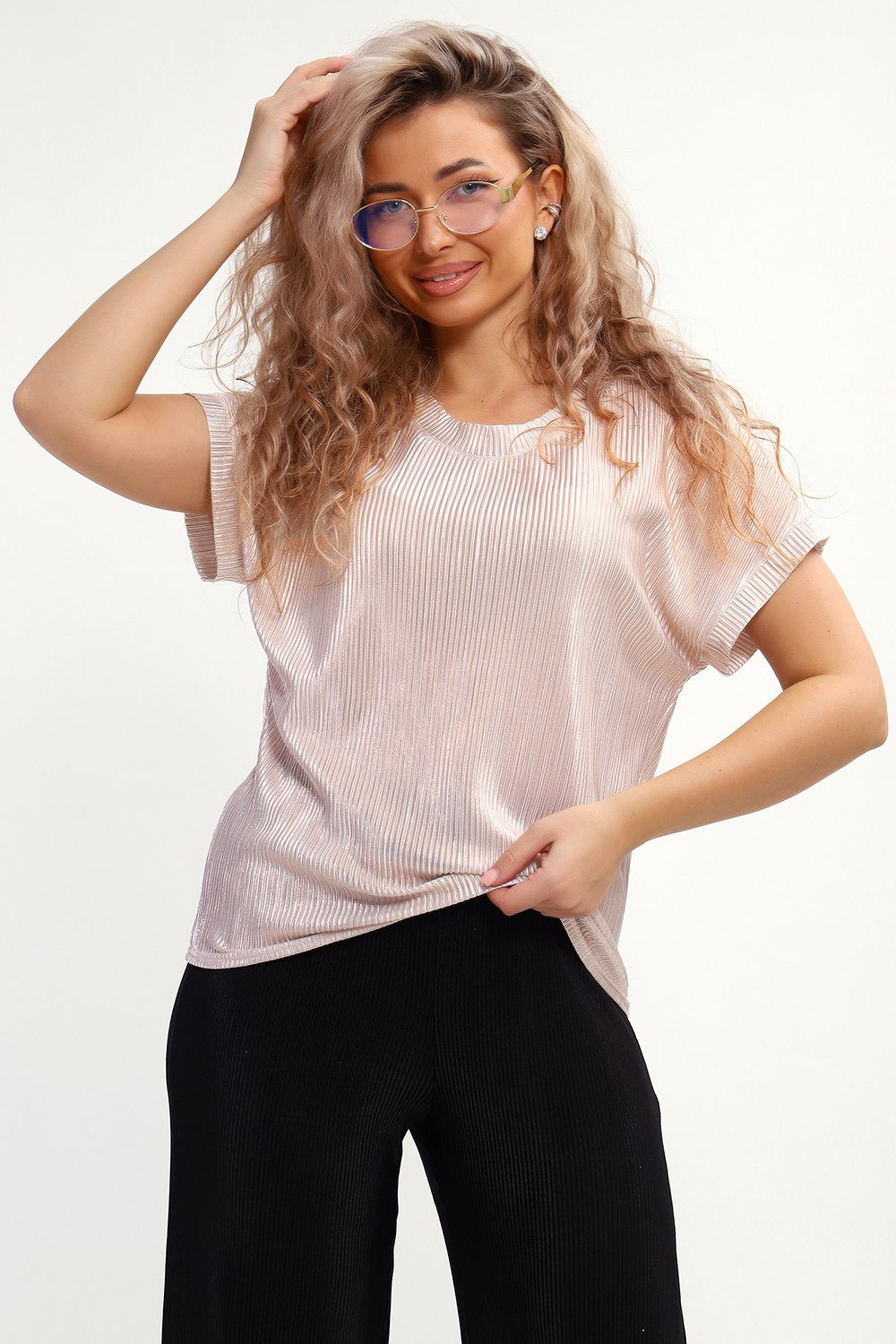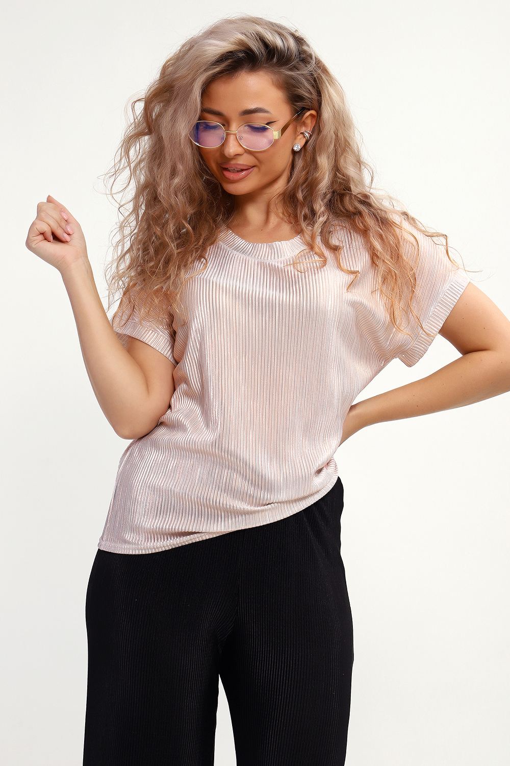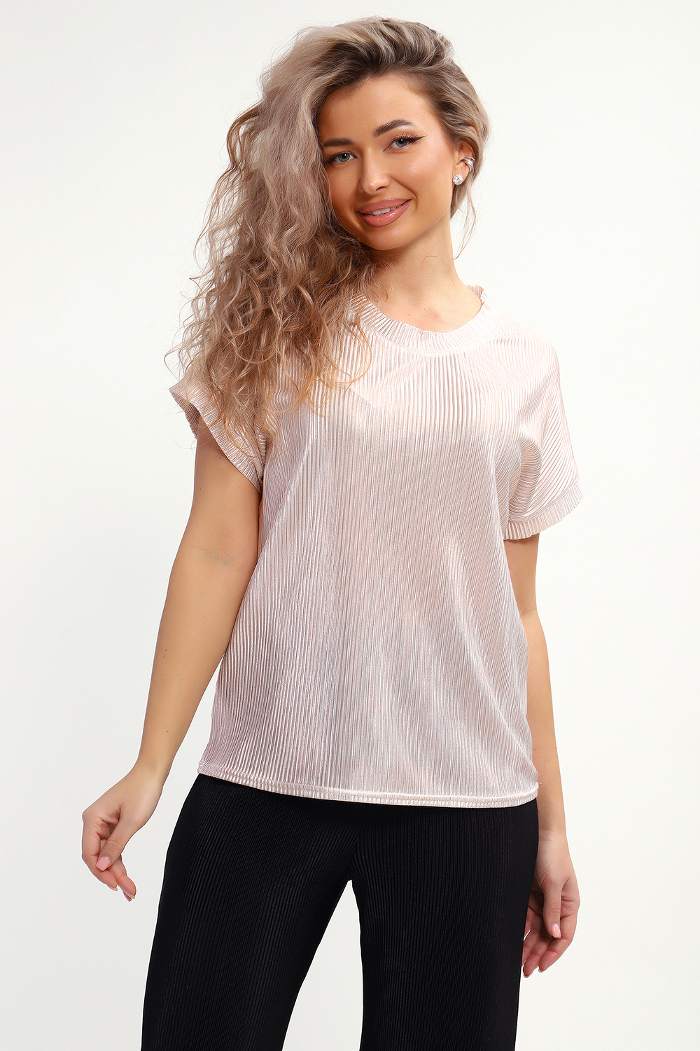 Стильная нарядная блузка, сочетающая в себе комфорт и элегантность. Благодаря свободному крою, блузка создает легкий силуэт и деликатно скрывает особенности фигуры. Добавляет изюминку изделию блестящая ткань с прочным напылением фойл, которое отлично держится на ткани после стирки. Ткань атлас гофре приятна на ощупь, хорошо тянется, не мнется, держит форму. Блузка смотрится и как офисная, и как вечерняя модель, а также это отличный вариант для летнего наряда. Округлая горловина, обработанная обтачкой, подчеркивает женственность образа, спущенный рукав не стесняет движений. Нарядная блузка позволит вам эффектно выглядеть не только на праздничных мероприятиях, но и в будни.