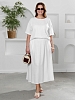 Блузка женская из гладкокрашеного тканого полотна , свободного силуэта, с горловиной овальной формы окантованной основным материалом, короткими втачными рукавами длиной до локтя.