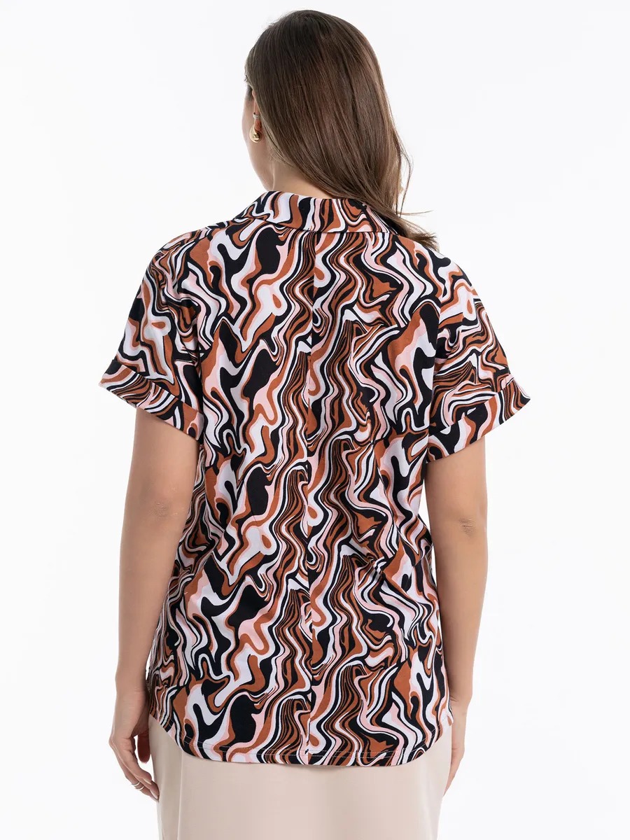 Блузка женская с коротким рукавом — стильный и универсальный предмет гардероба, идеально подходящий для создания образов на каждый день или выхода в офис. Модель выполнена из качественного трикотажного полотна на основе 100% хлопка. Натуральный материал обеспечивает комфорт, приятные тактильные ощущения, воздухопроницаемость и легкость, что особенно актуально в теплое лето. Такая хлопковая вещь отлично подойдет женщинам, которые ценят стиль и заботятся о своем удобстве в любое время дня. Свободный крой и удлиненная спинка делают кофточку подходящей для самых разных комплекций и стилей. Особенностью изделия являются боковые разрезы, добавляющие подвижности и легкости образу, а также завершающий модный акцент в стиле oversize.