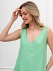 Блузка женская из гладкокрашеного тканого полотна, свободного силуэта, без рукавов, слегка расширенная к низу, с глубокой горловиной V-образной формы, вытачками в области груди.