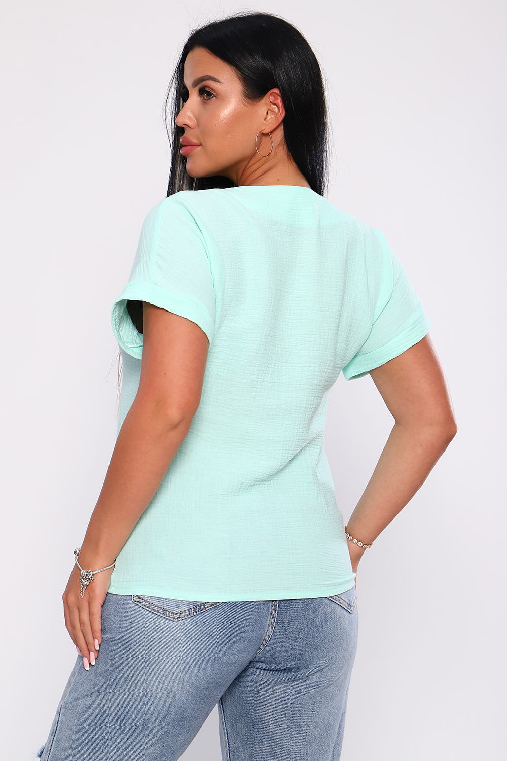 Удобная и практичная футболка из муслина - настоящая находка для тех, кто хочет выглядеть элегантно в любое время года. Муслин, состоящий из 100% хлопка, обеспечивает комфорт и свежесть, позволяет коже дышать в любую погоду. Свободный крой футболки подчеркивает фигуру, обеспечивает свободу движения. Спущенный рукав с небольшим манжетом придает законченность образу, V-образный вырез горловины подчеркнет вашу женственность и удлинит шею. Футболка из муслина проста в уходе, быстро сохнет, не требует глажки. В ней вы будете чувствовать себя уверенно и комфортно и на работе, и на отдыхе. Носите ее самостоятельно и с пиджаком - она гармонично дополнит и деловой костюм , и летний наряд.