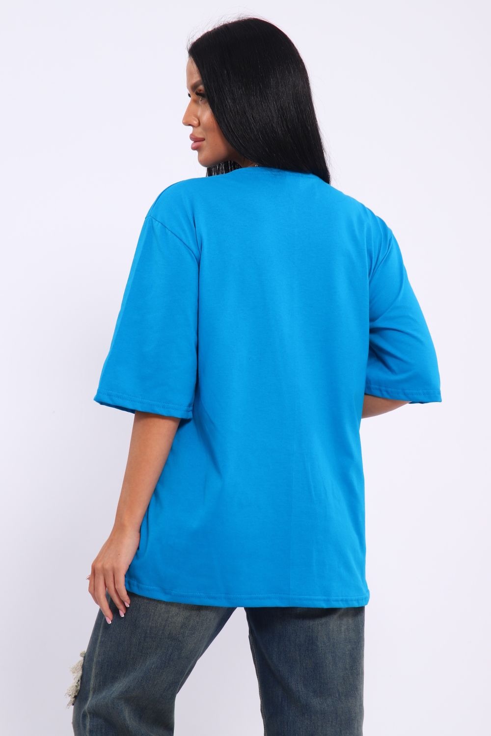 Женская футболка 803 сшита из плотного качественного 100% хлопка. Удлиненный крой и классический прямой фасон, круглый вырез горловины и рукава подчеркнет вашу женственность. Подойдет для девушек любой комплекции.