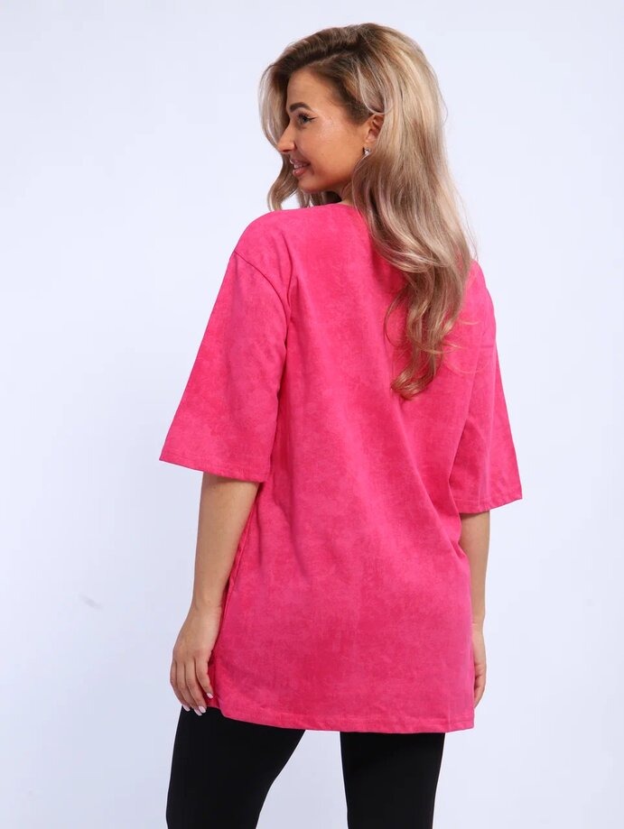 Футболка 808 выполнена в стиле оверсайз свободного кроя. Модель отличается особой актуальностью благодаря трендовому цветовому решению — расцветке «варенка».