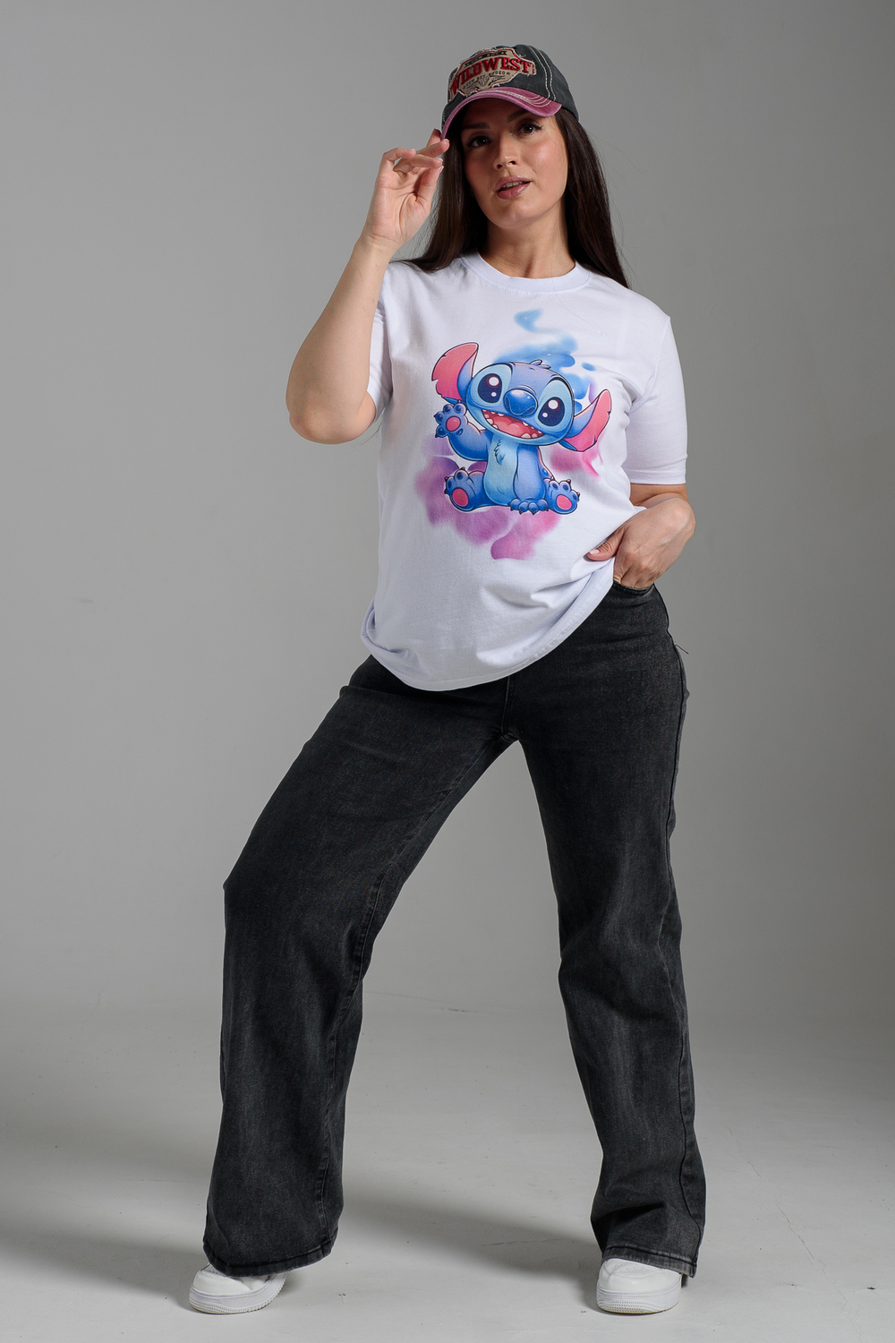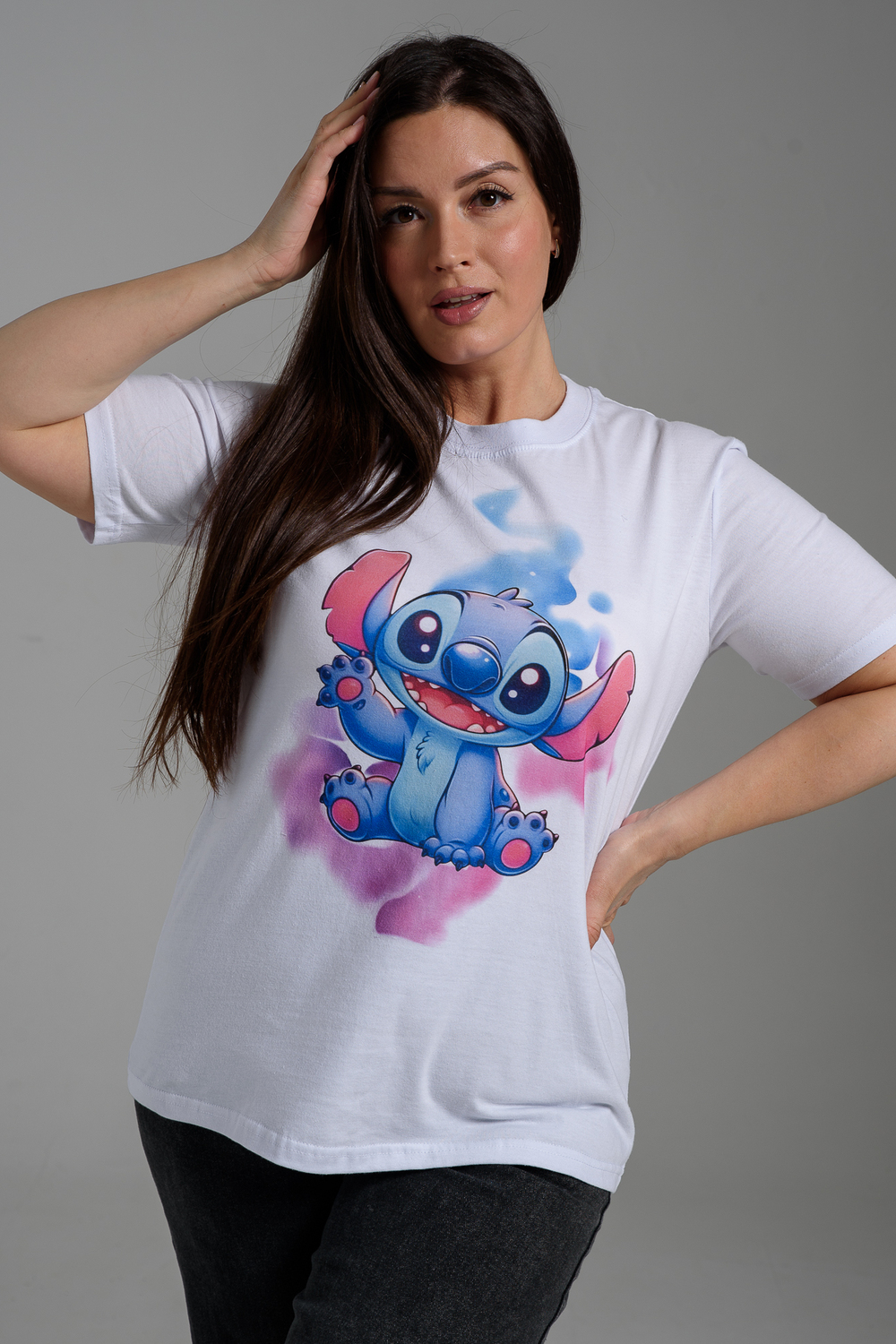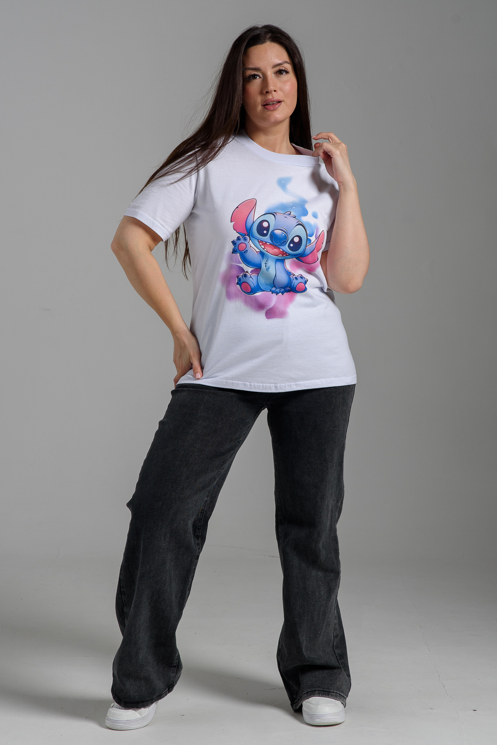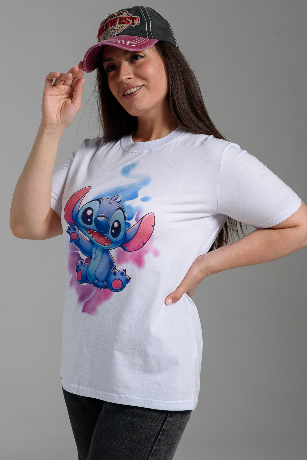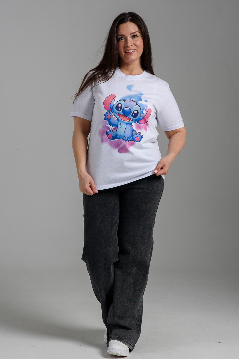 Женская футболка 8557 / белый+стич