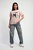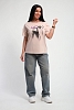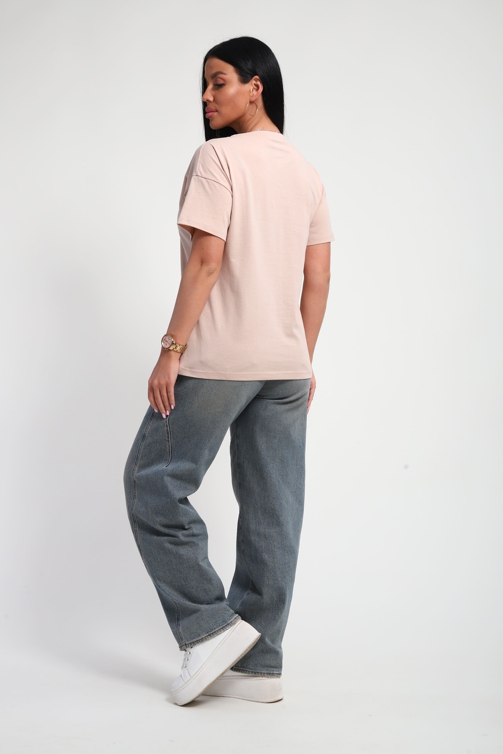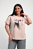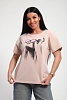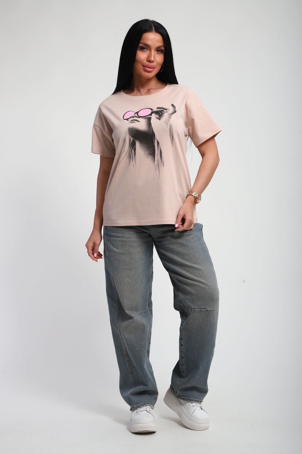 Футболка женская из гладкокрашеного трикотажа, хлопок 100%. Прямого силуэта, свободного облегания. горловина круглой формы. Рукав короткий. Низ изделия прямой. На полочке принт, шелкография.