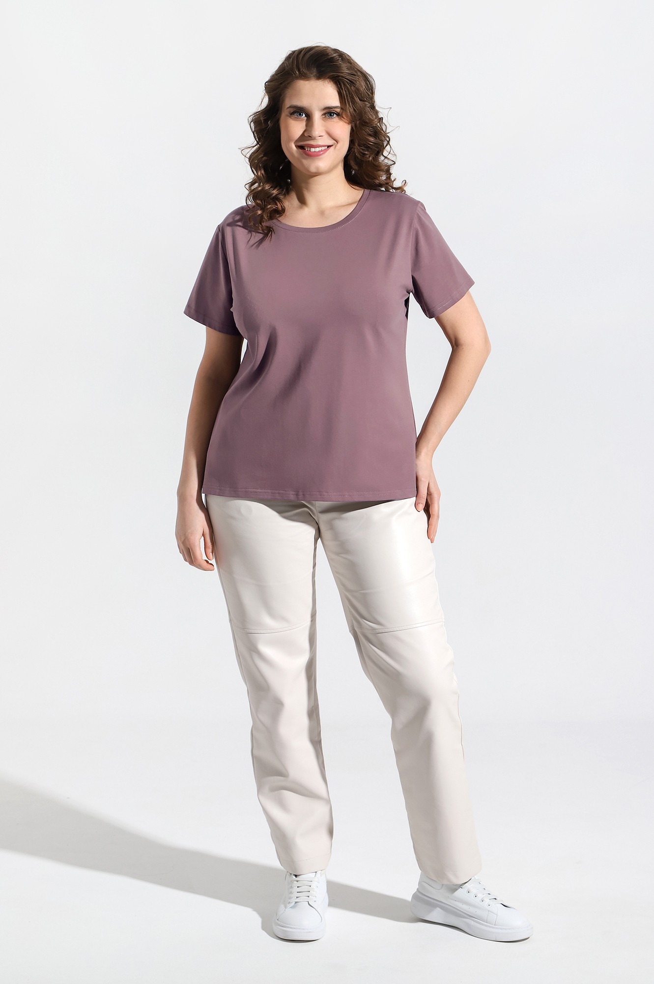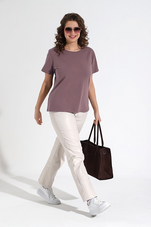 Футболка женская из трикотажного гладкокрашеного полотна «кулирка» с лайкрой, классического покроя, с короткими втачными рукавами и горловиной овальной формы, обработанной втачной планкой.