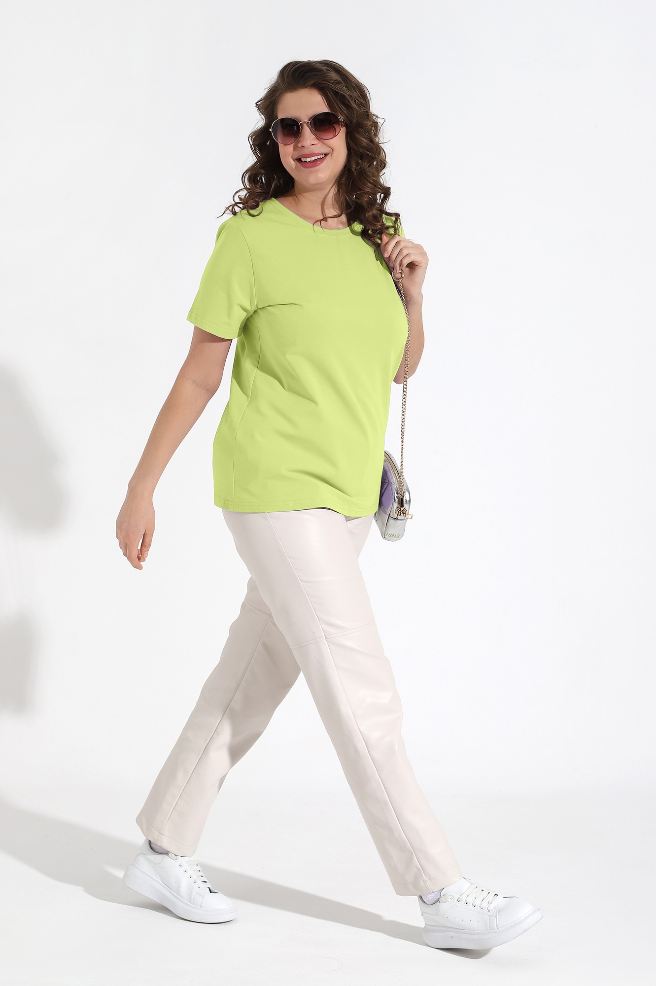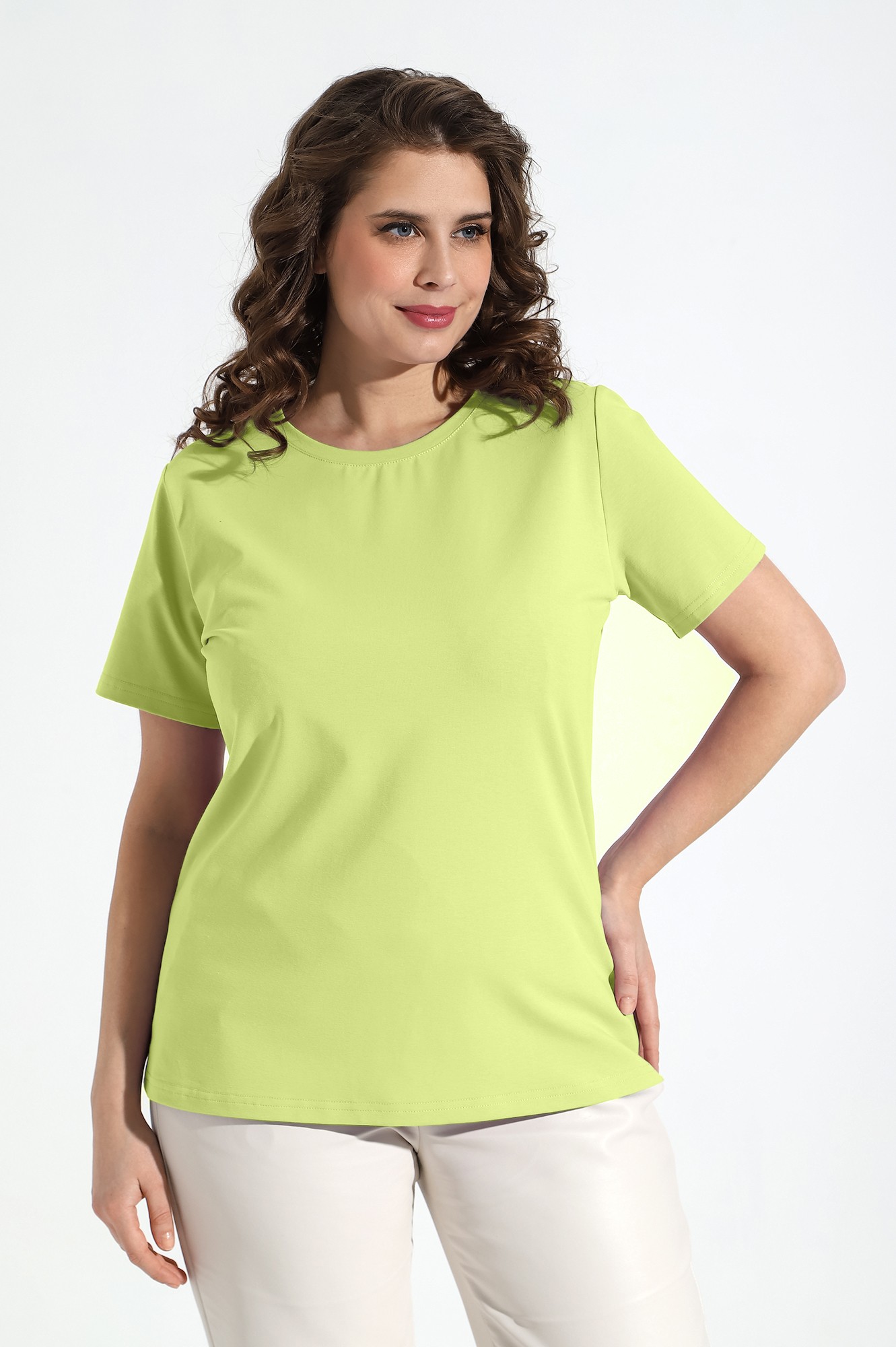 Футболка женская из трикотажного гладкокрашеного полотна «кулирка» с лайкрой, классического покроя, с короткими втачными рукавами и горловиной овальной формы, обработанной втачной планкой.