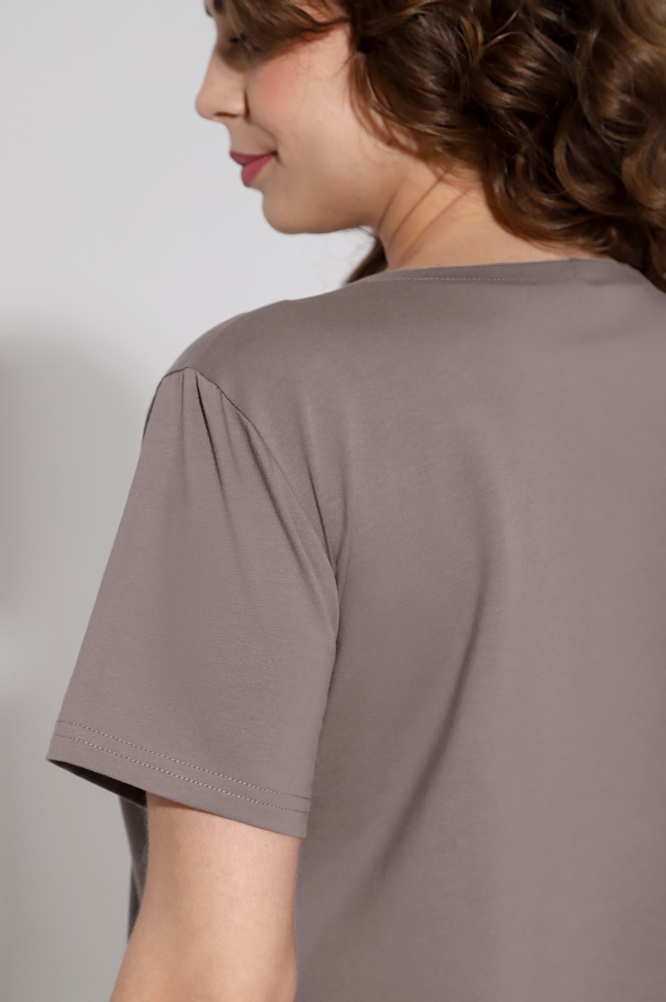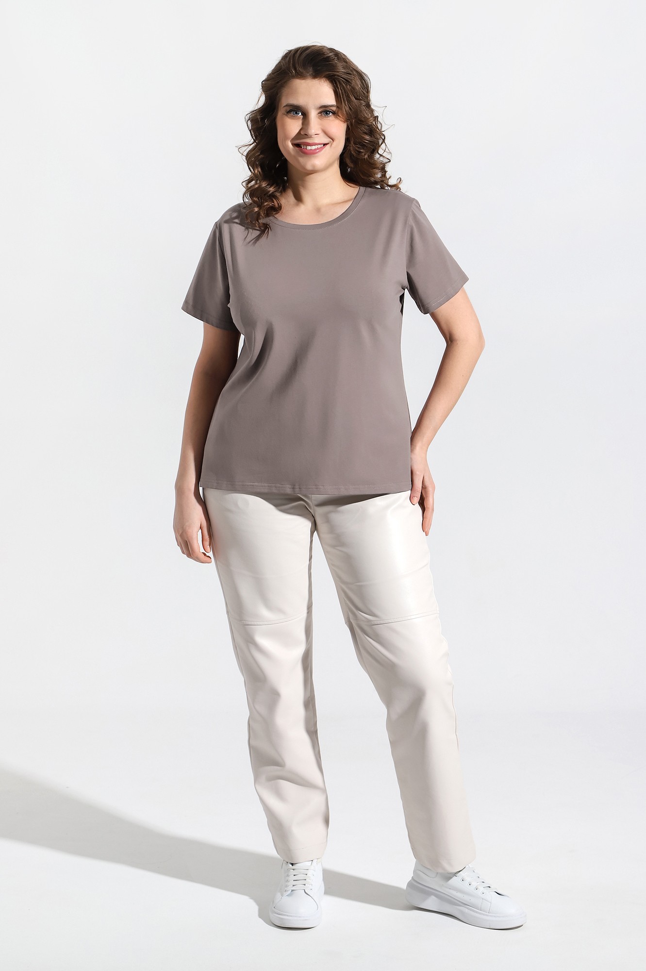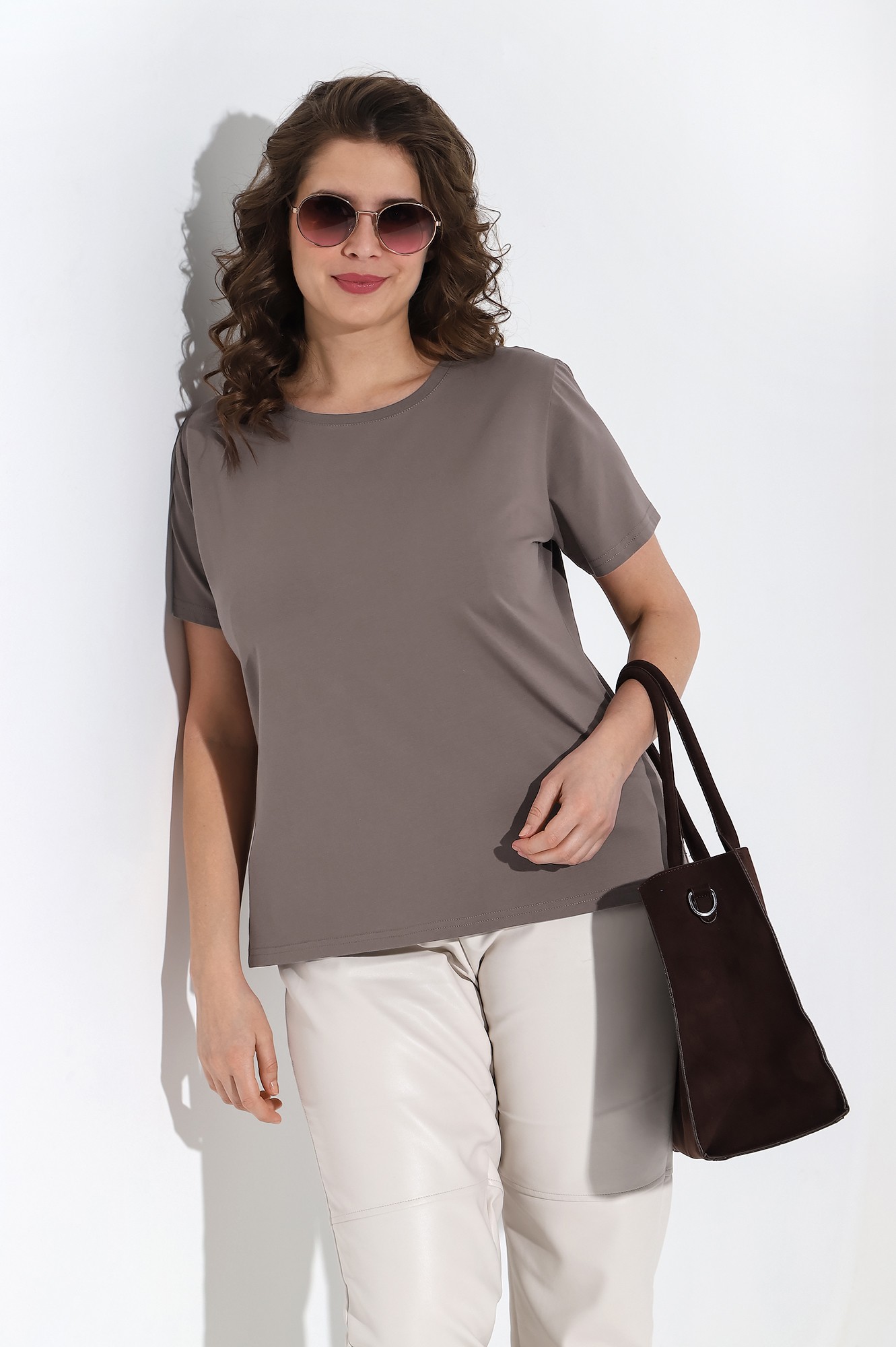 Футболка женская из трикотажного гладкокрашеного полотна «кулирка» с лайкрой, классического покроя, с короткими втачными рукавами и горловиной овальной формы, обработанной втачной планкой.