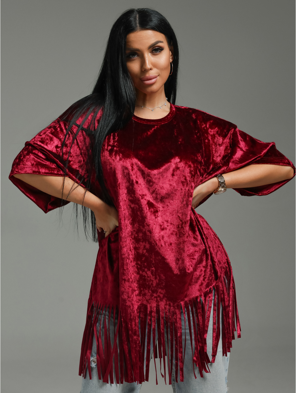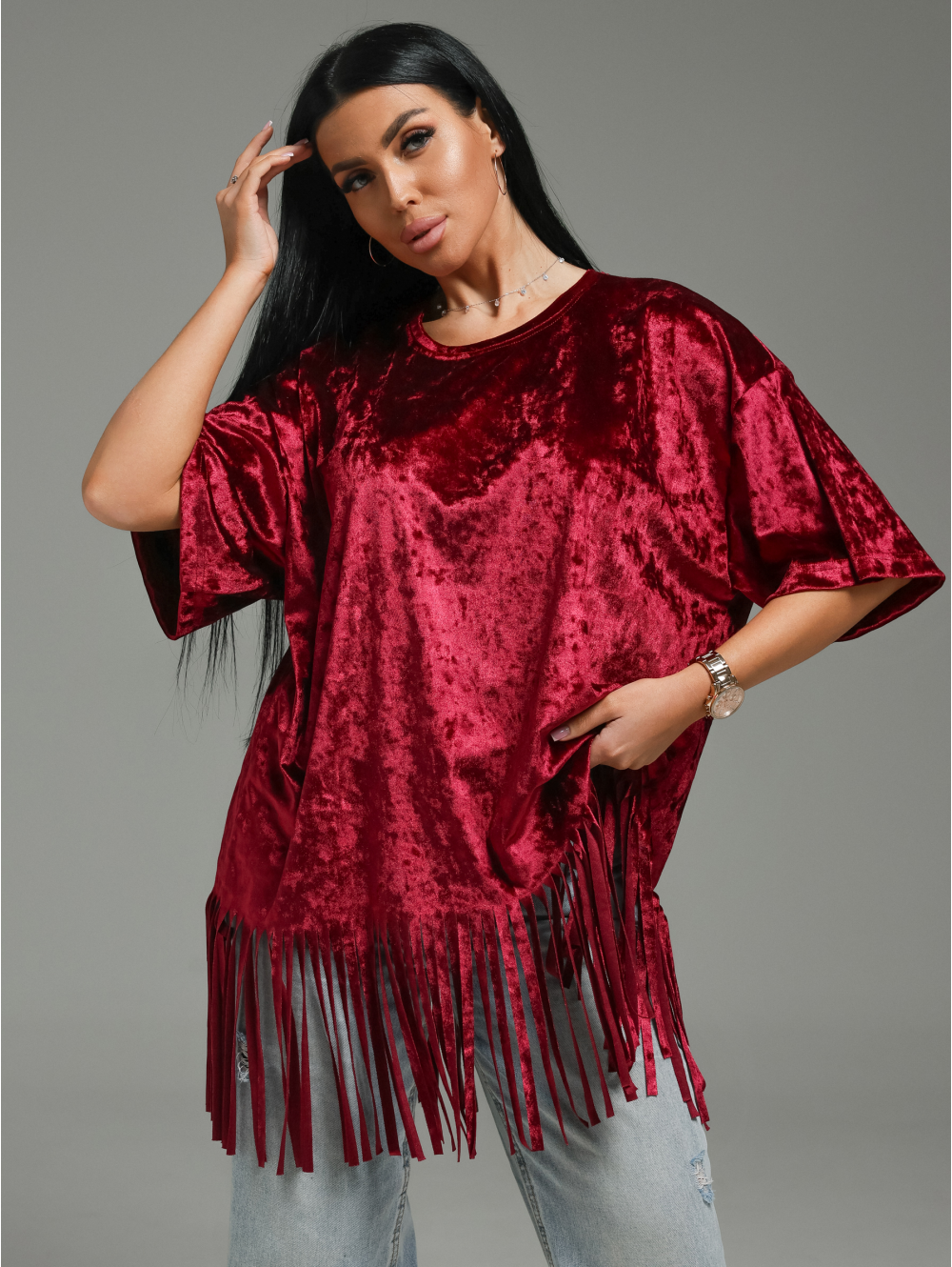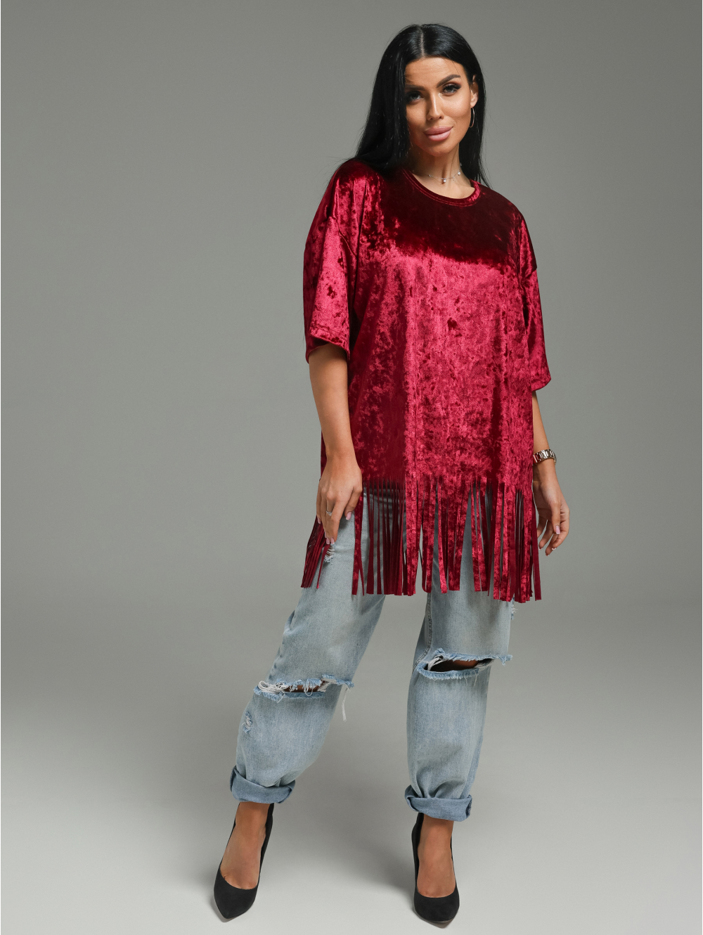 Футболка Бьянка oversize с коротким втачным рукавом. По низу футболки бахрома.