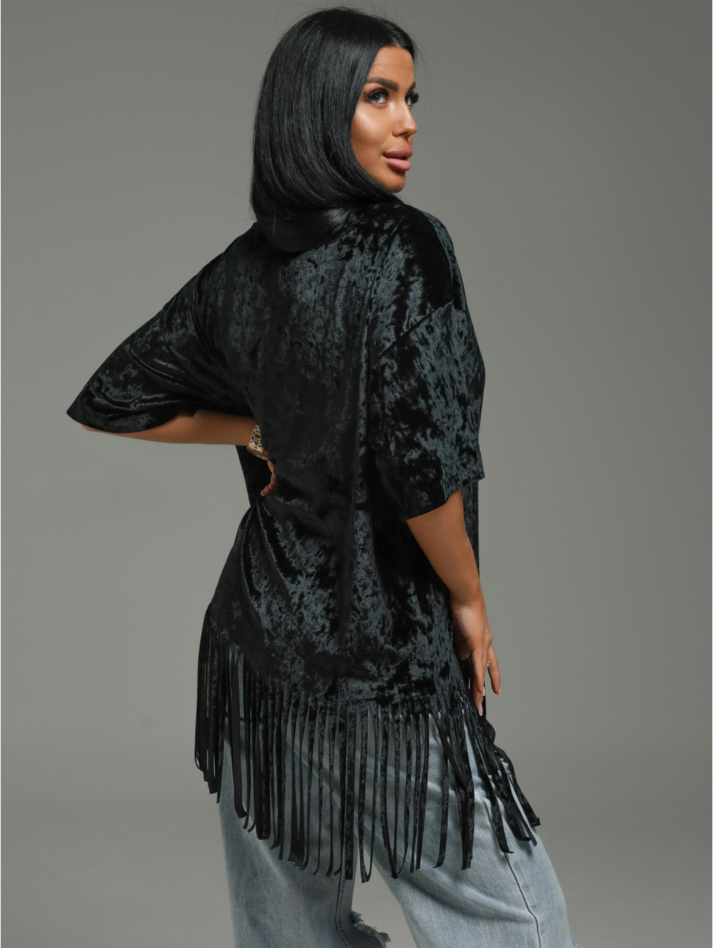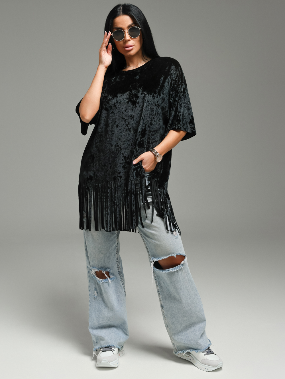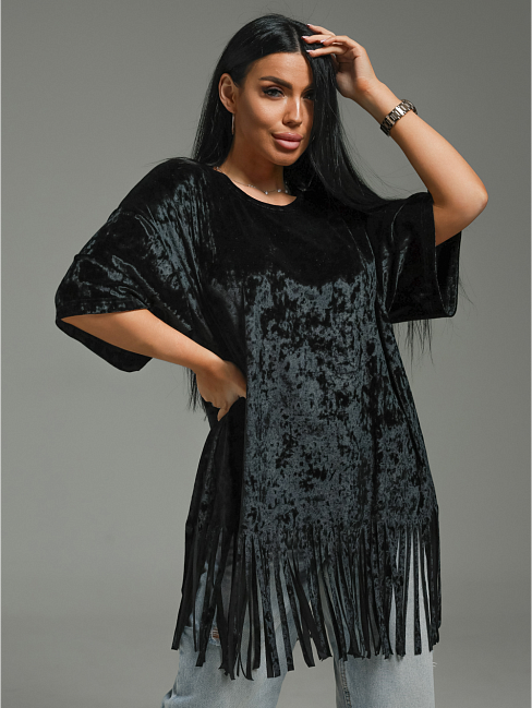Футболка Бьянка oversize с коротким втачным рукавом. По низу футболки бахрома.