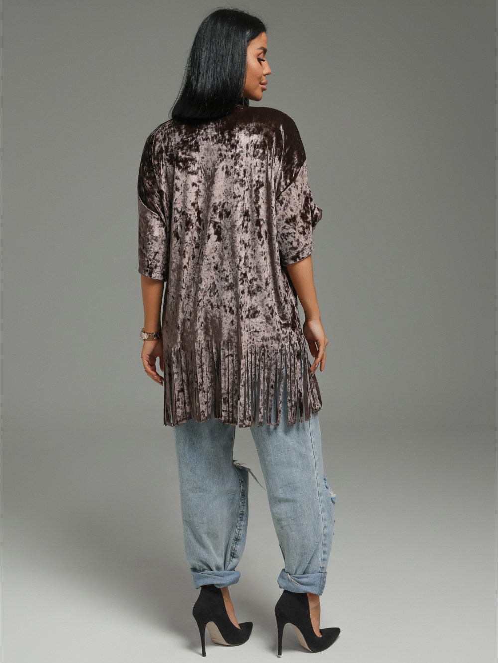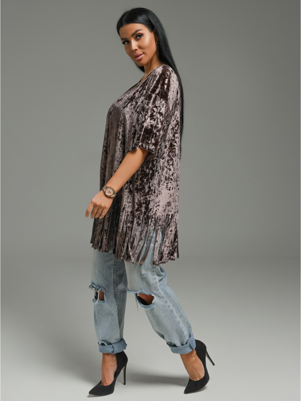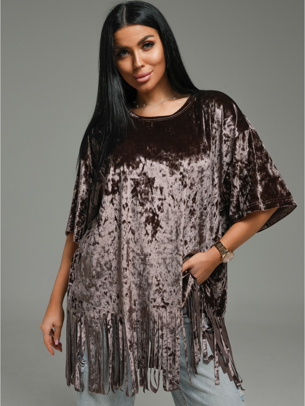 Футболка Бьянка oversize с коротким втачным рукавом. По низу футболки бахрома.