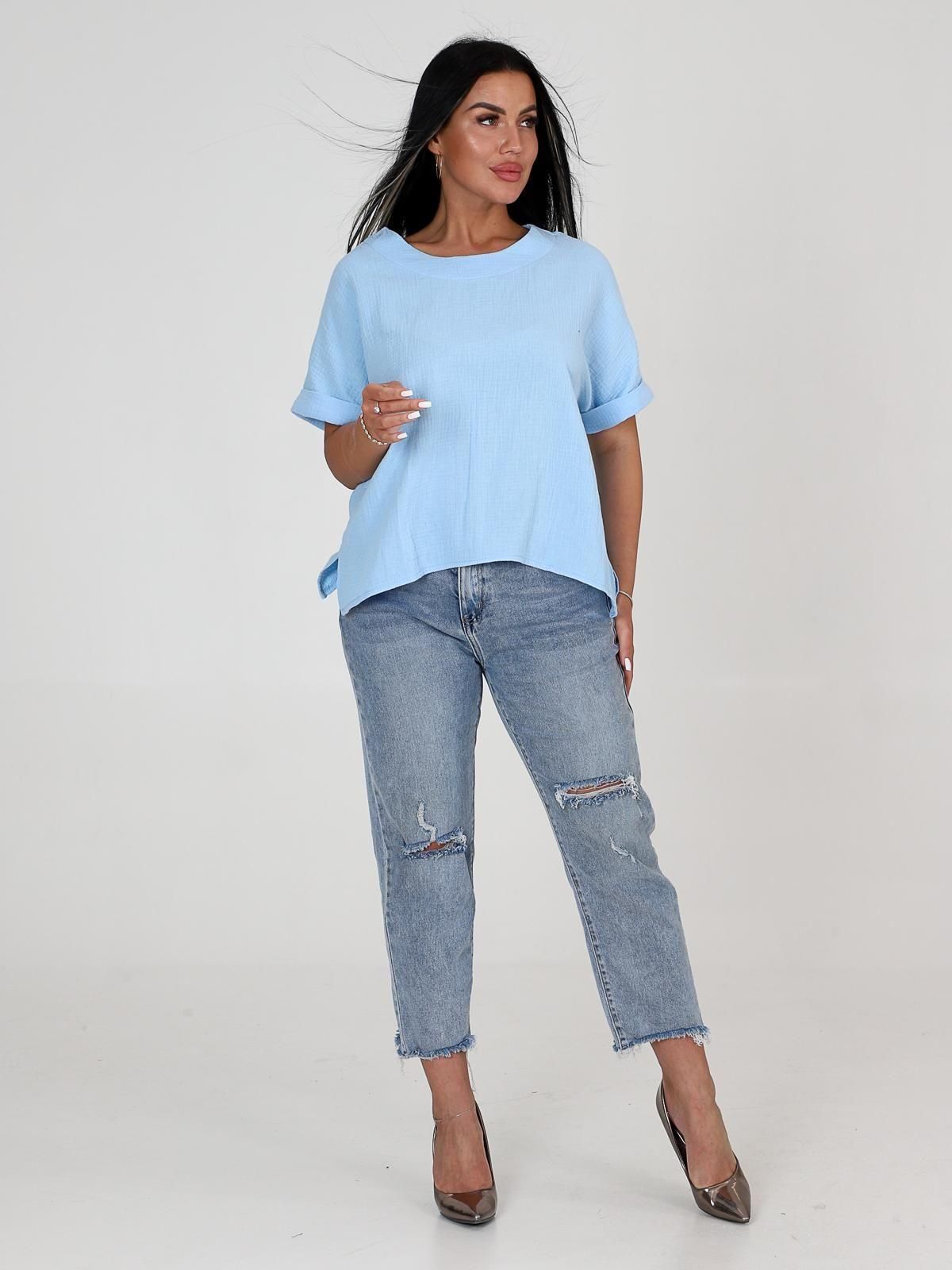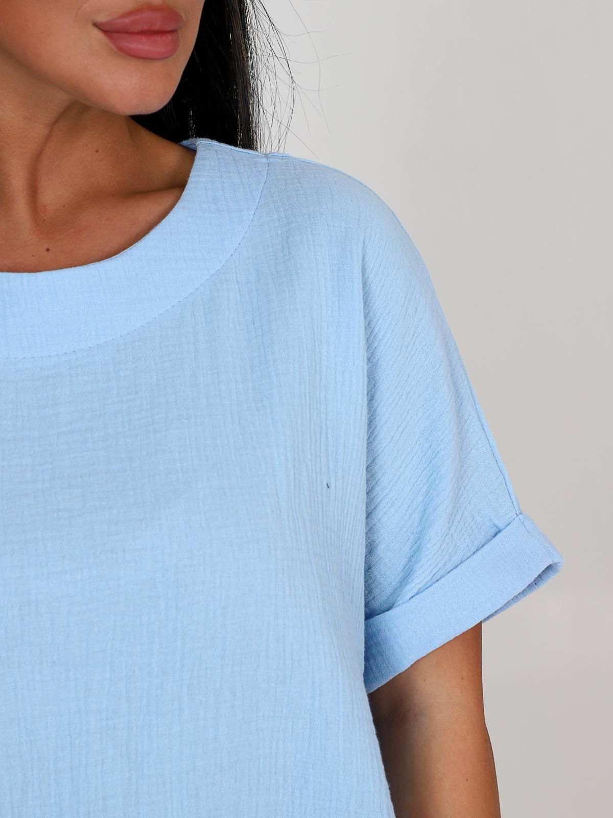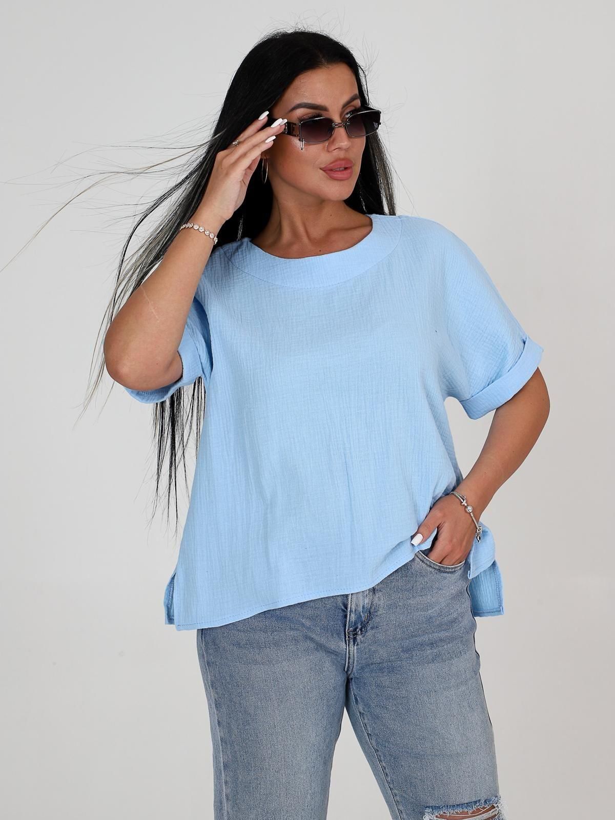 Женская футболка из муслина - лёгкое и комфортное изделие, подходящее для повседневной носки, отдыха и работы. Муслин - ткань из 100% хлопка, которая хорошо пропускает воздух, впитывает влагу и не вызывает аллергии. Такие футболки часто имеют свободный крой, что обеспечивает свободу движений.