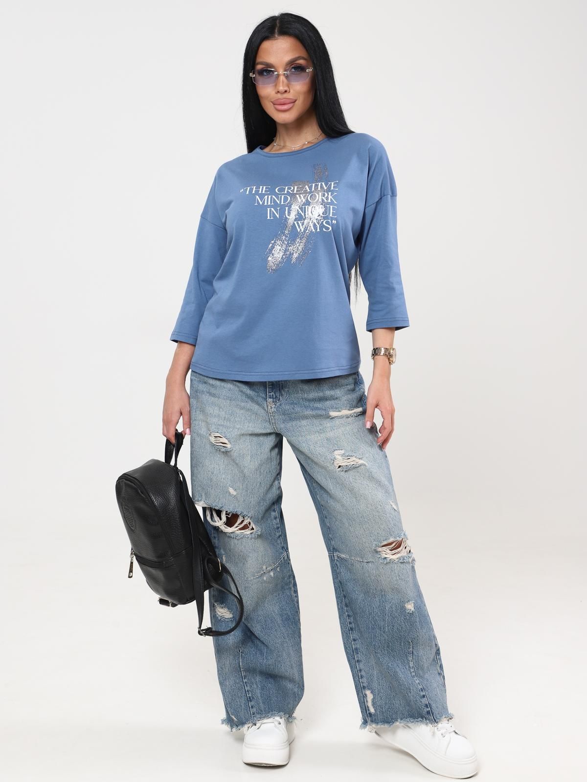 Женская футболка с длинным рукавом и принтом.