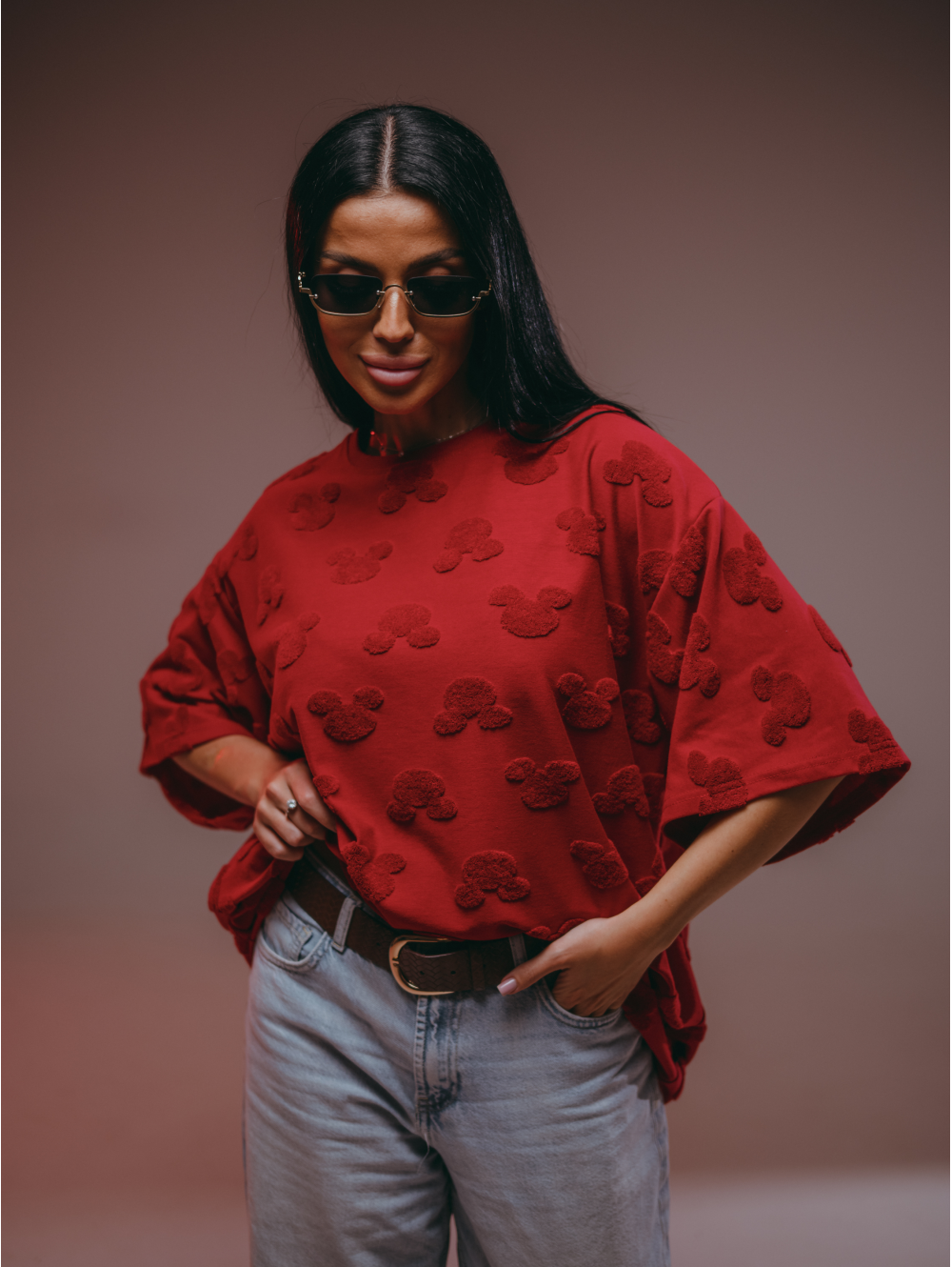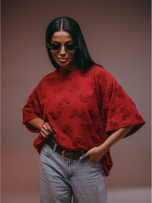 Женская футболка Ирбис / Махра, Микки бордо