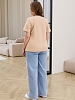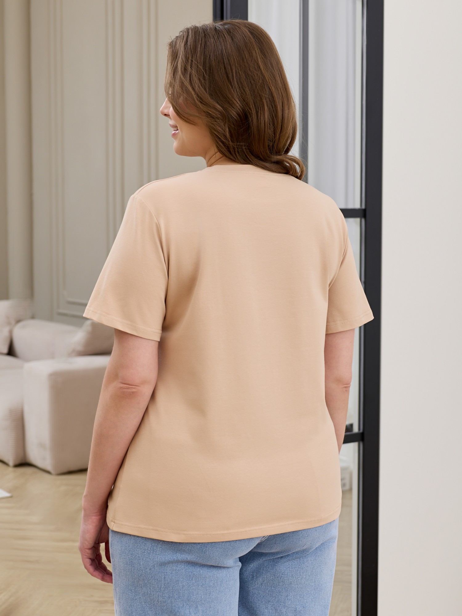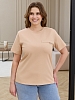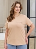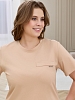Футболка женская из гладкокрашеного трикотажного полотна «кулирка с лайкрой», прямого кроя, с короткими втачными рукавами, горловиной овальной формы, обработанной втачной планкой. На полочке настрочена планка имитирующая вход в карман с декоративной нашивкой.