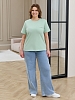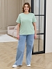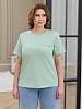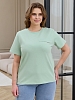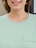 Футболка женская из гладкокрашеного трикотажного полотна «кулирка с лайкрой», прямого кроя, с короткими втачными рукавами, горловиной овальной формы, обработанной втачной планкой. На полочке настрочена планка имитирующая вход в карман с декоративной нашивкой.