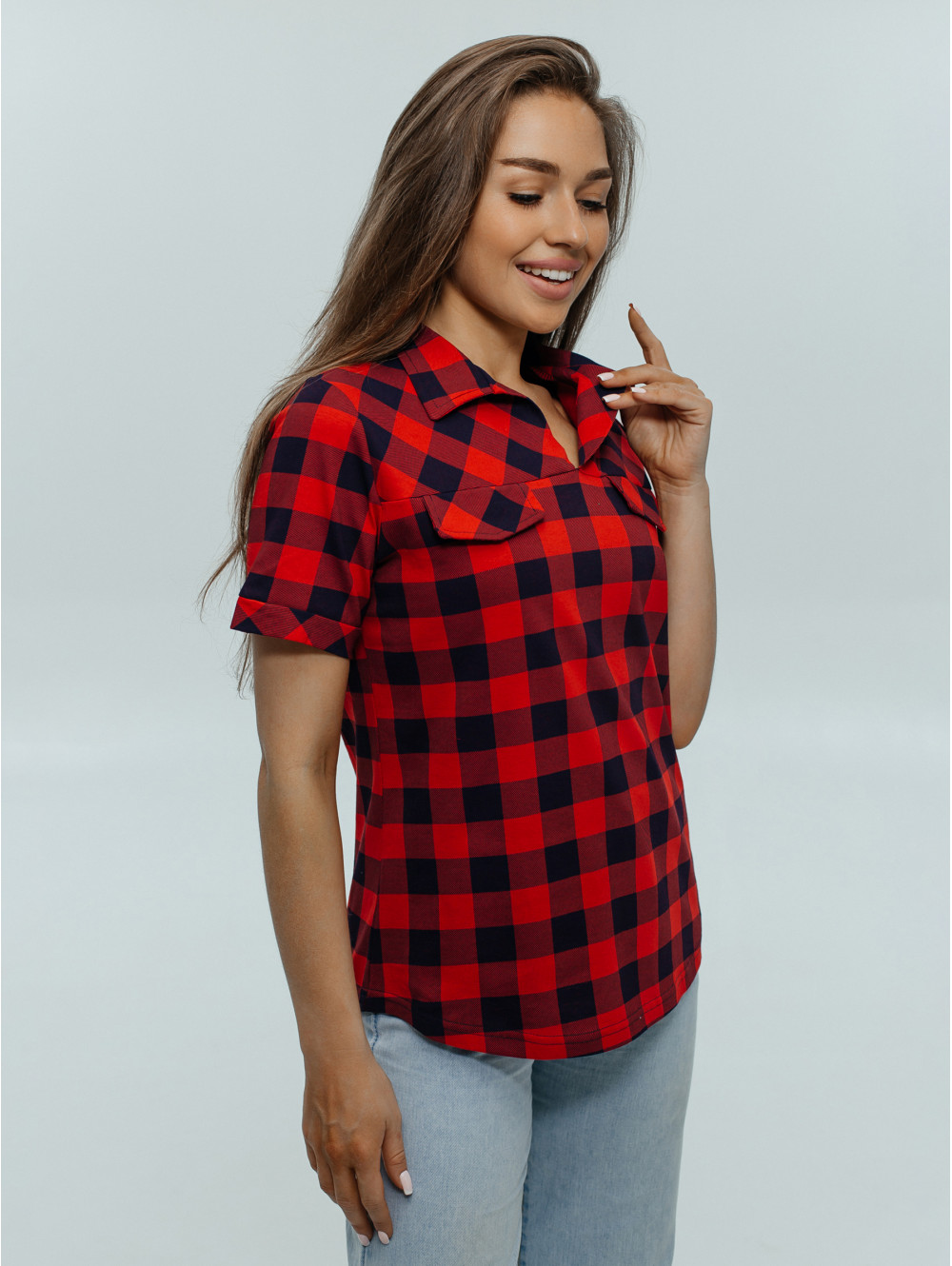 Футболка женская в клетку Катрин, с коротким рукавом, на полочке имитация карманов. Низ округлой формы с перепадом длины. Футболка является неотъемлемой частью женского гардероба. Вы будете великолепны в представленной модели, стильная и модная футболка обязана быть в гардеробе каждой дамы.
