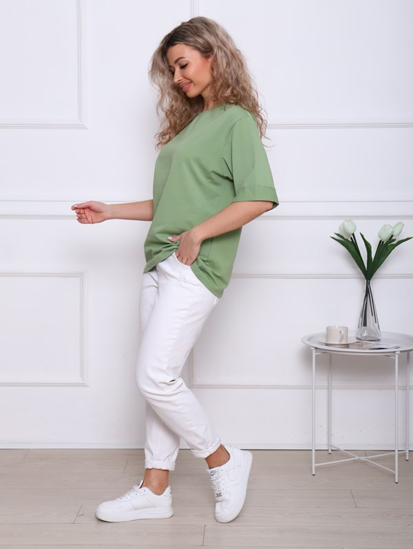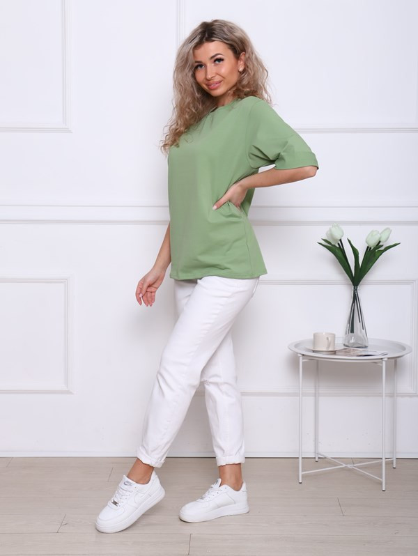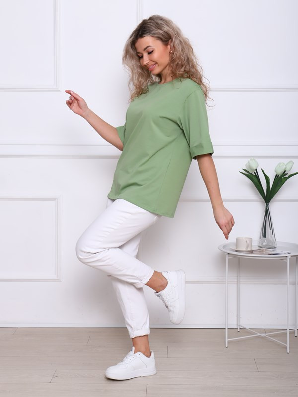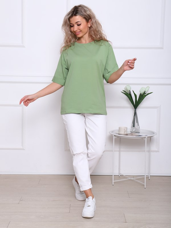 Однотонная футболка Кейт-2 - это базовый элемент гардероба. Самый массовый вид одежды. В настоящее время просто невозможно себе представить более популярного предмета одежды, чем футболка. Ее носят дома, на работе, в путешествии, с джинсами и классическими брюками, юбками. Изделие выполнено из качественного хлопка с лайкрой, не вызывает раздражения и аллергии. Футболка женская оверсайз подходит тем, кто предпочитает свободный крой и комфорт.