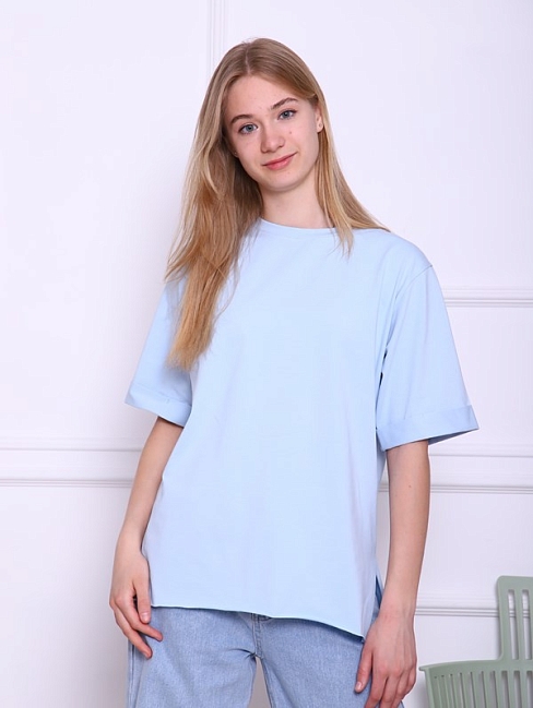 Однотонная футболка Кейт - это базовый элемент гардероба. Самый массовый вид одежды. В настоящее время просто невозможно себе представить более популярного предмета одежды, чем футболка. Ее носят дома, на работе, в путешествии, с джинсами и классическими брюками, юбками. Изделие выполнено из качественного хлопка с лайкрой, не вызывает раздражения и аллергии. Футболка женская оверсайз подходит тем, кто предпочитает свободный крой и комфорт.