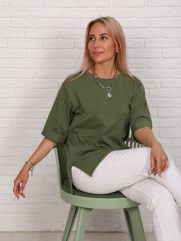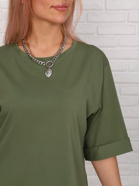 Однотонная футболка Кейт - это базовый элемент гардероба. Самый массовый вид одежды. В настоящее время просто невозможно себе представить более популярного предмета одежды, чем футболка. Ее носят дома, на работе, в путешествии, с джинсами и классическими брюками, юбками. Изделие выполнено из качественного хлопка с лайкрой, не вызывает раздражения и аллергии. Футболка женская оверсайз подходит тем, кто предпочитает свободный крой и комфорт.
