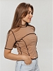 Выполнен из приятной для тела ткани лапша, изделие будто вывернуто наизнанку.