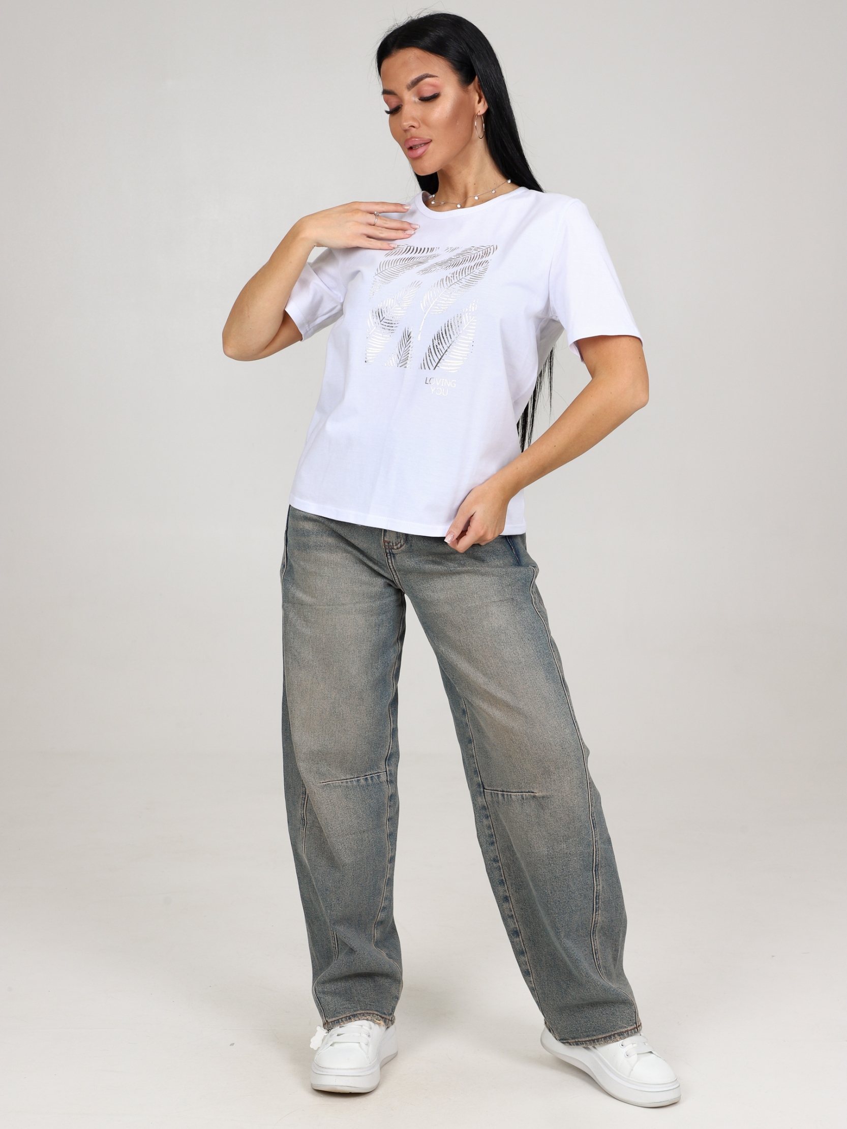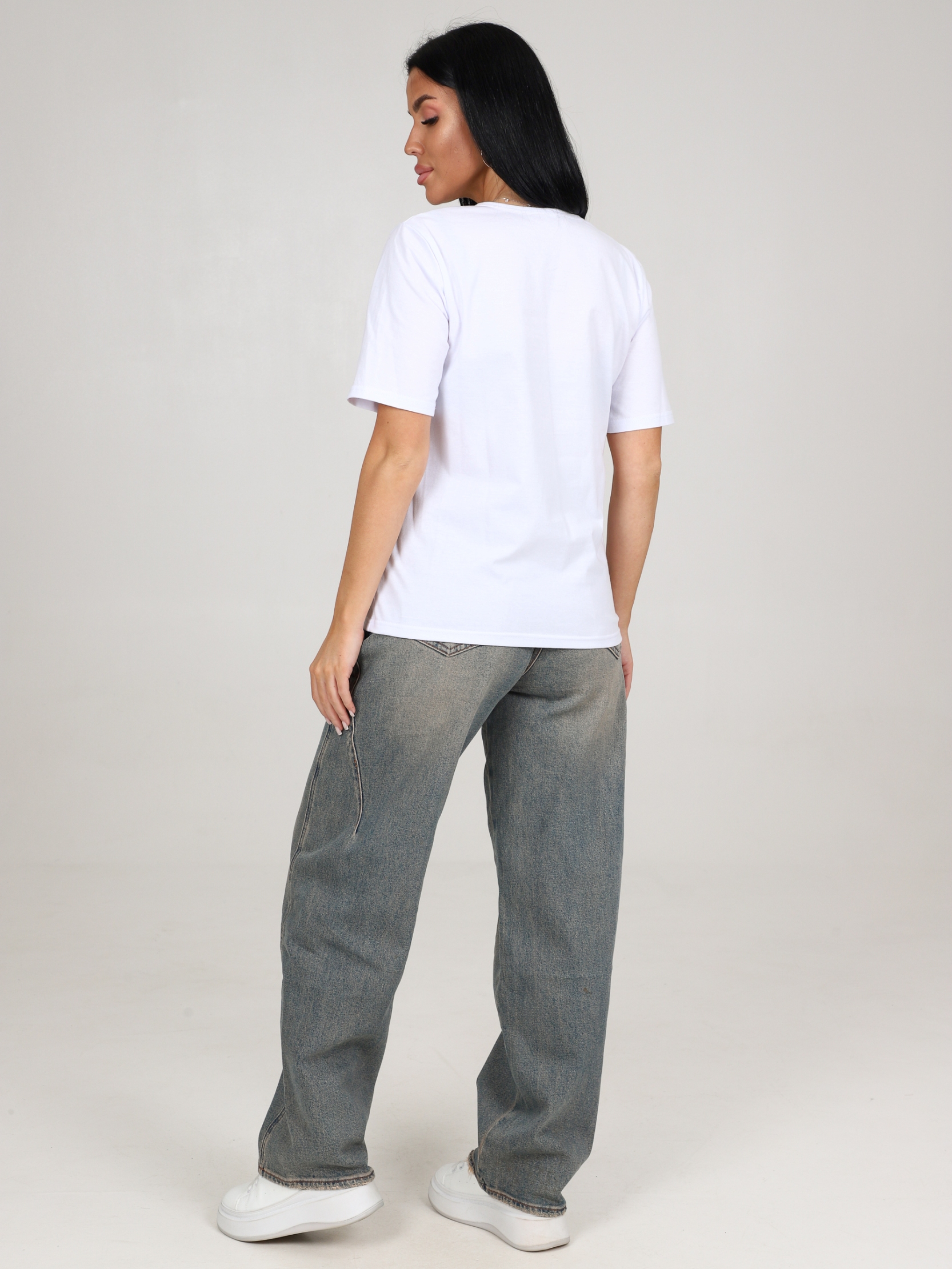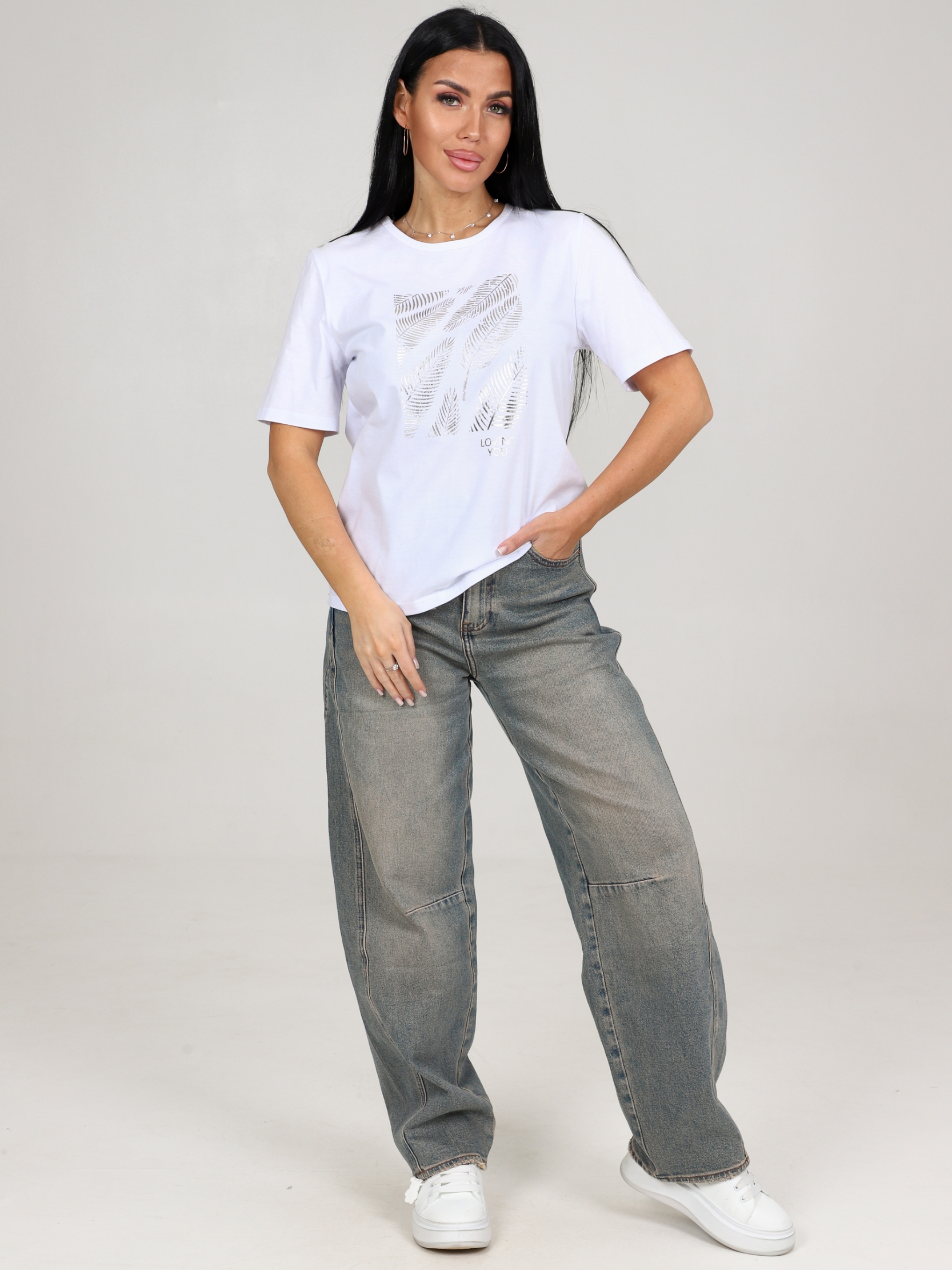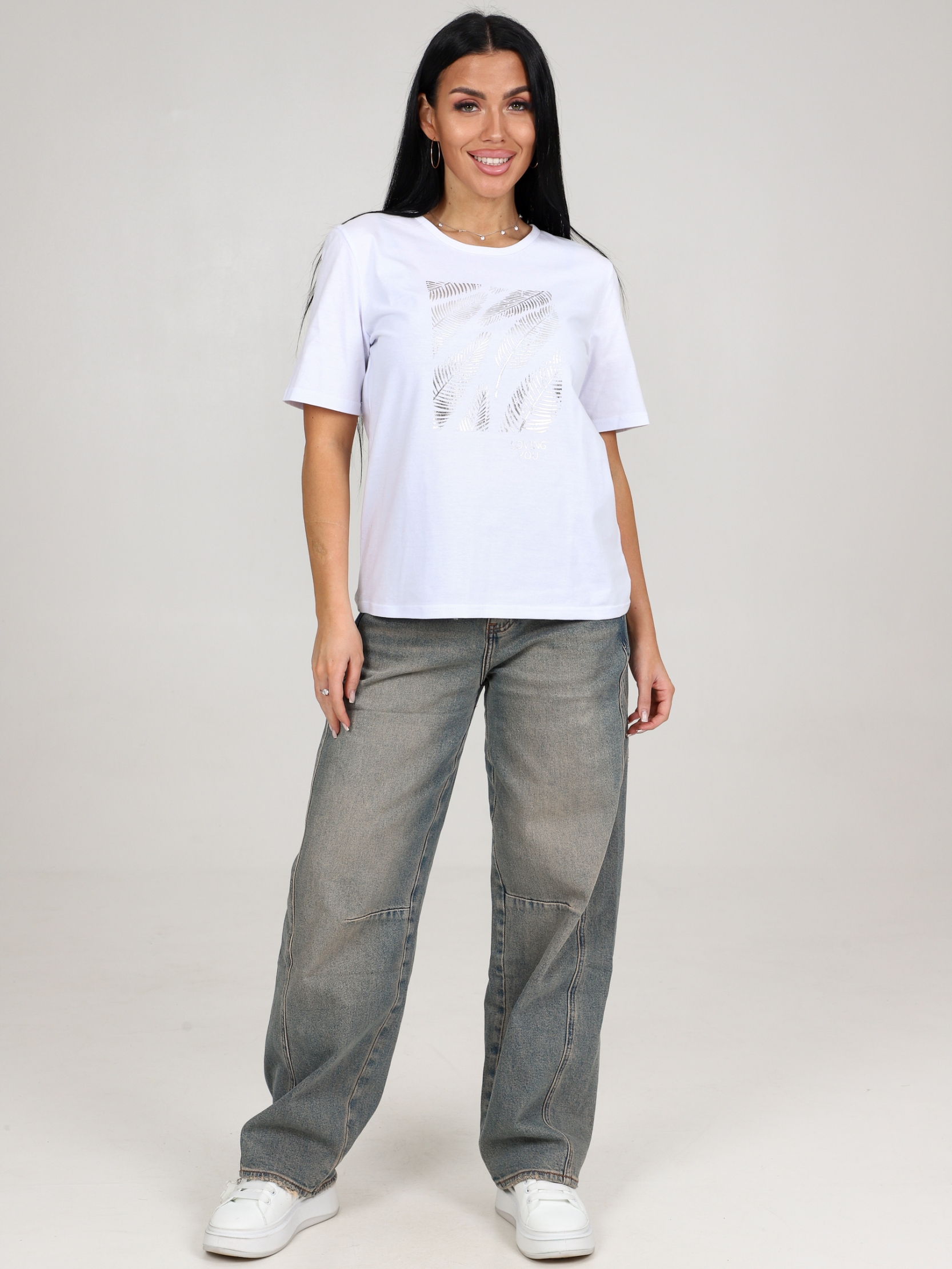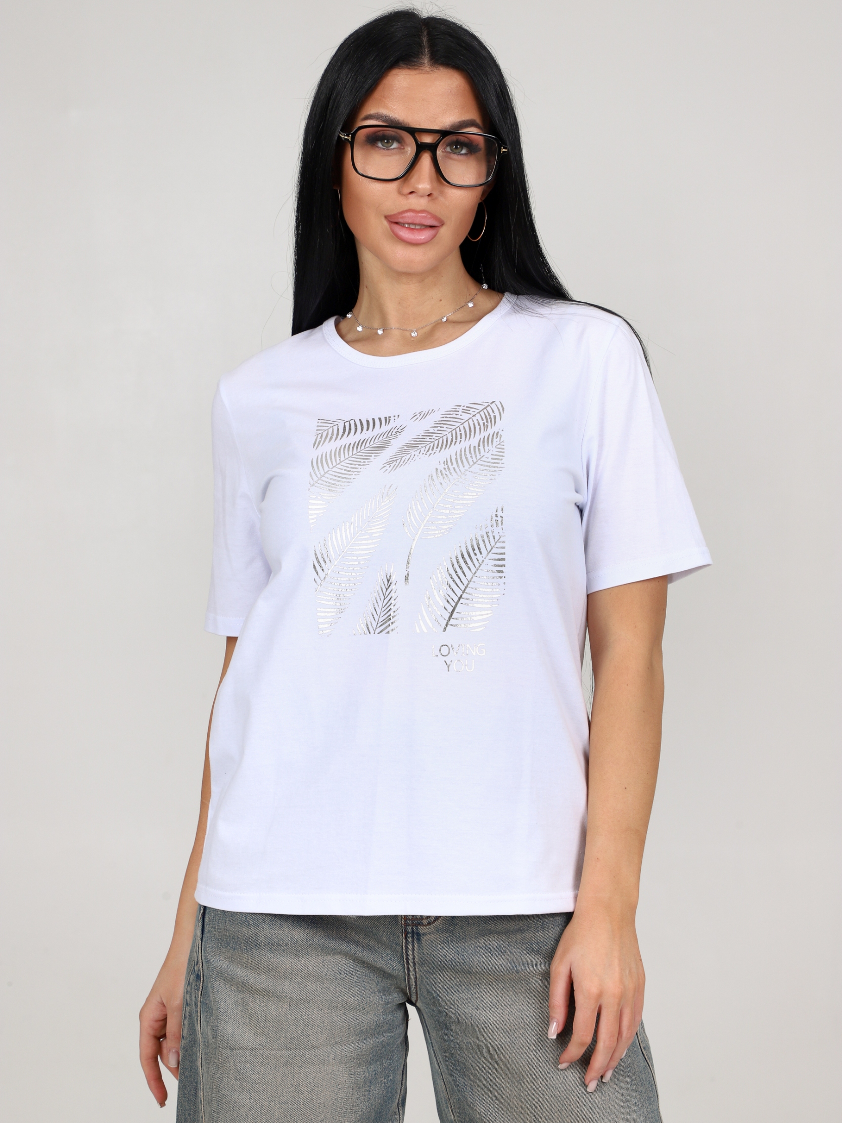 Женская футболка с принтом из кулирки — это модель из мягкого и дышащего материала, который хорошо подходит для повседневной носки. Кулирка — это трикотажное полотно, обычно из 100% хлопка или с добавлением полиэстера для повышения износостойкости.