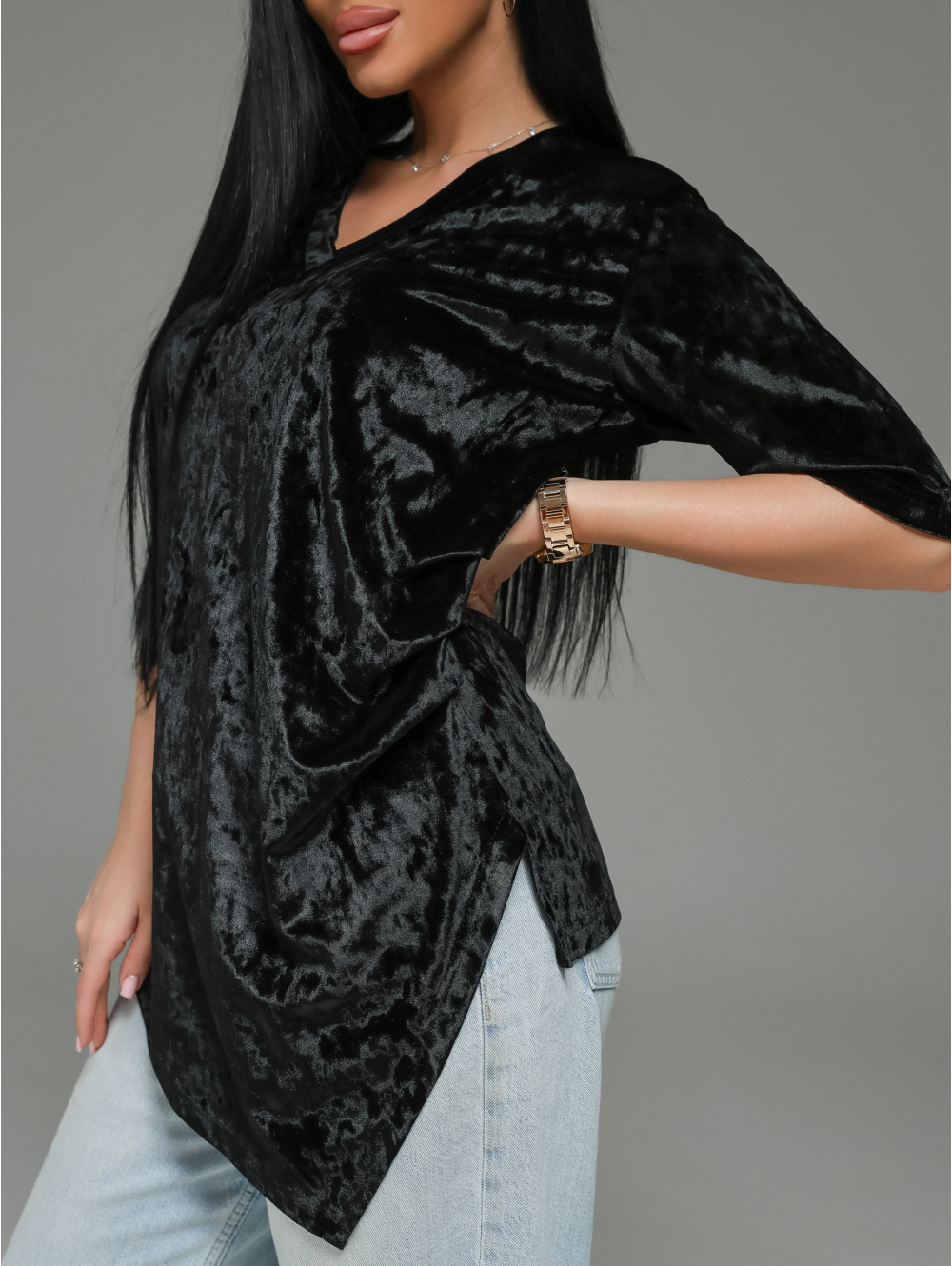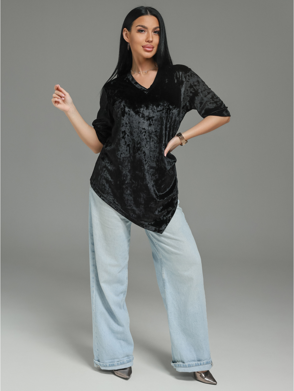 Эта нестандартная линия создаёт динамичный, современный силуэт и превращает простую футболку в предмет искусства.