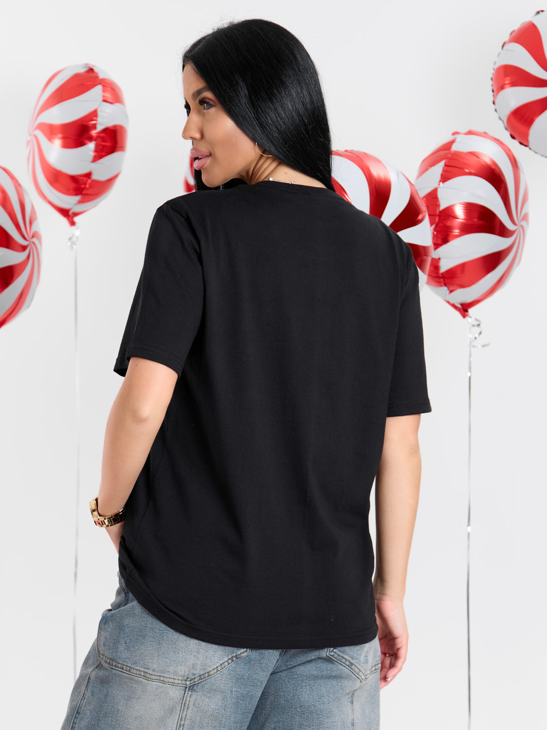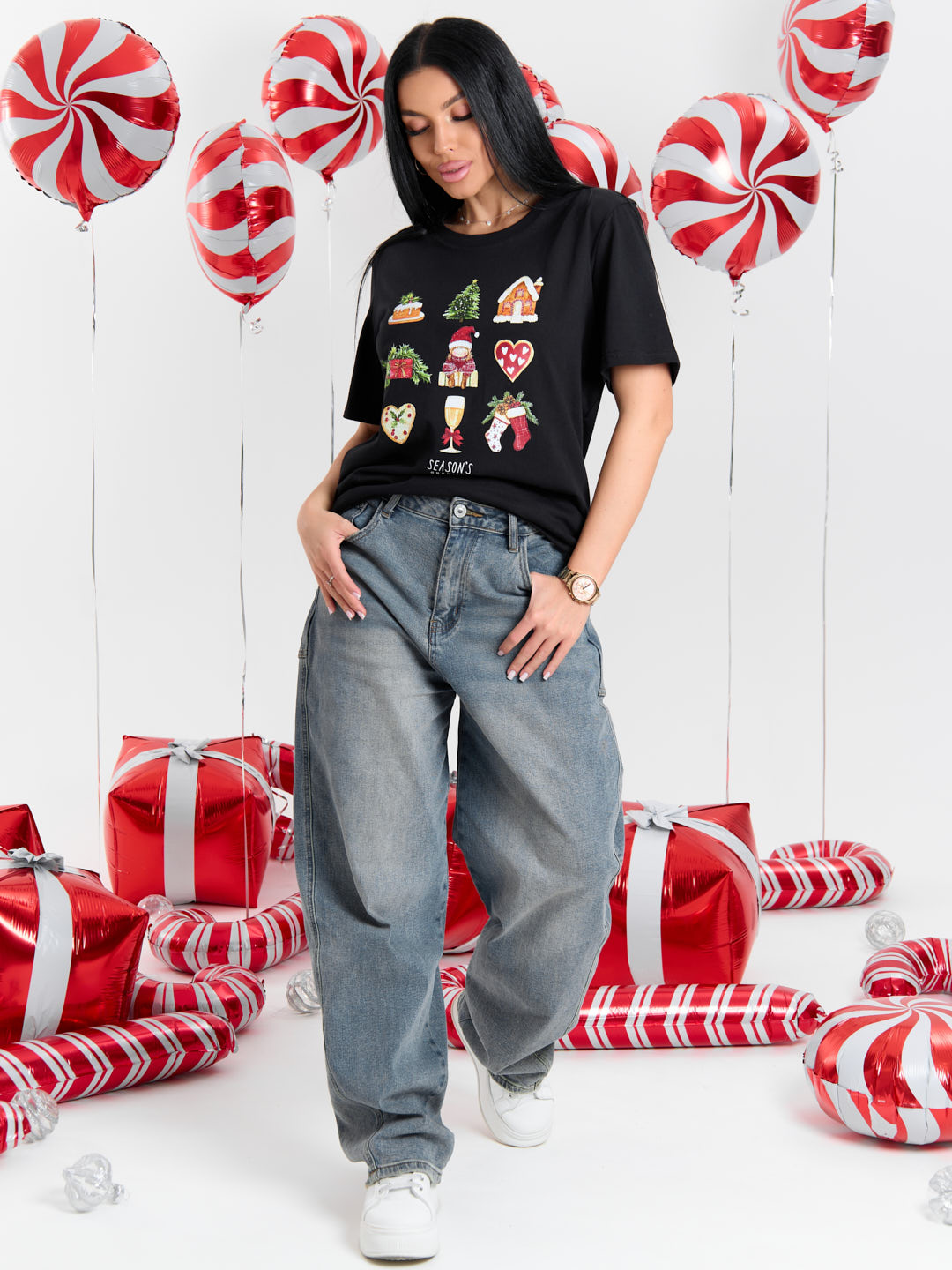 Эта футболка с новогодним принтом создана для тех, кто любит атмосферу зимних праздников. Яркие краски сразу вызывают ассоциации с тёплыми семейными вечерами, подарками под ёлкой и ароматом имбирного печенья. Классическая футболка с коротким рукавом и О-образной горловиной, будет отлично смотреться как за новогодним столом, так и в канун праздников.