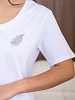 Футболка женская из кулирки с лайкрой, качества пенье с V-вырезом, коротким рукавом и лаконичной вышивкой. Рост модели 165см.