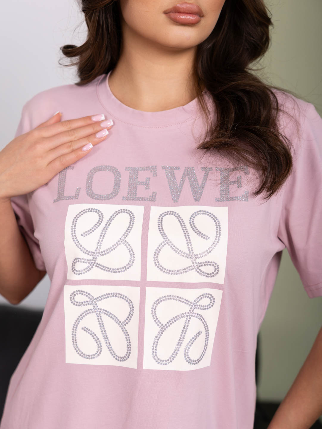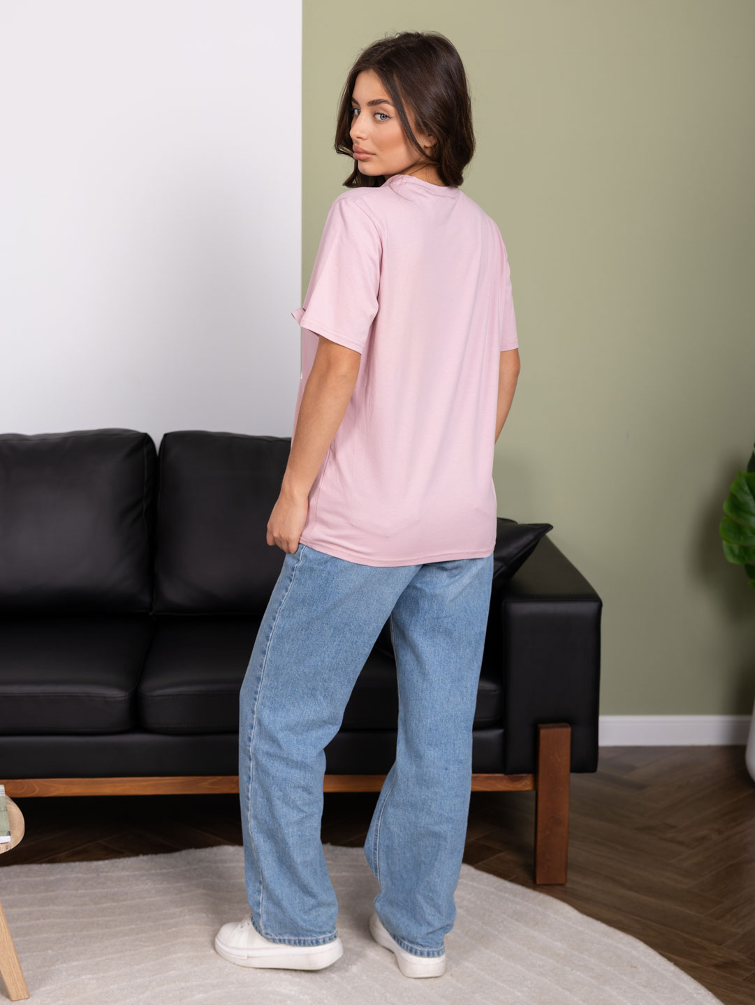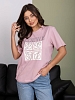 Женская базовая футболка трендового оттенка, с втачным рукавом, О-образной горловиной, длиной до середины бедра. Спереди печать с блестками.