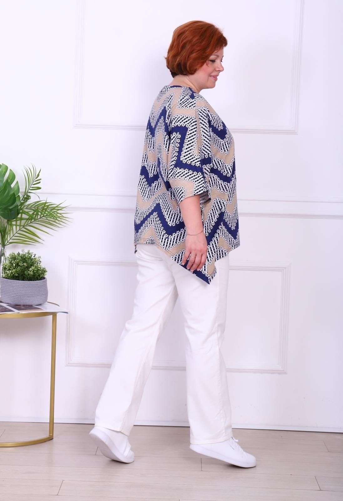 Женская футболка выполнена из полотна "кулирка". Футболка свободного кроя с рукавом "летучая мышь" длиною 3/4. Горловина круглой формы обработана бейкой, низ футболки разноуровневый.