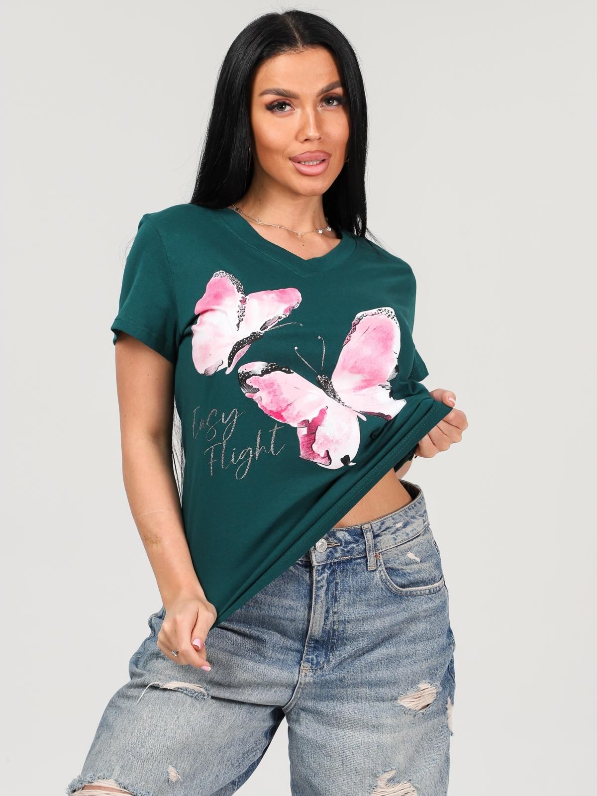 Футболка «Поликсена» — это стильная и удобная модель, выполненная из качественного материала кулирка. Она отличается тонкостью, гладкостью и хорошей воздухопроницаемостью.