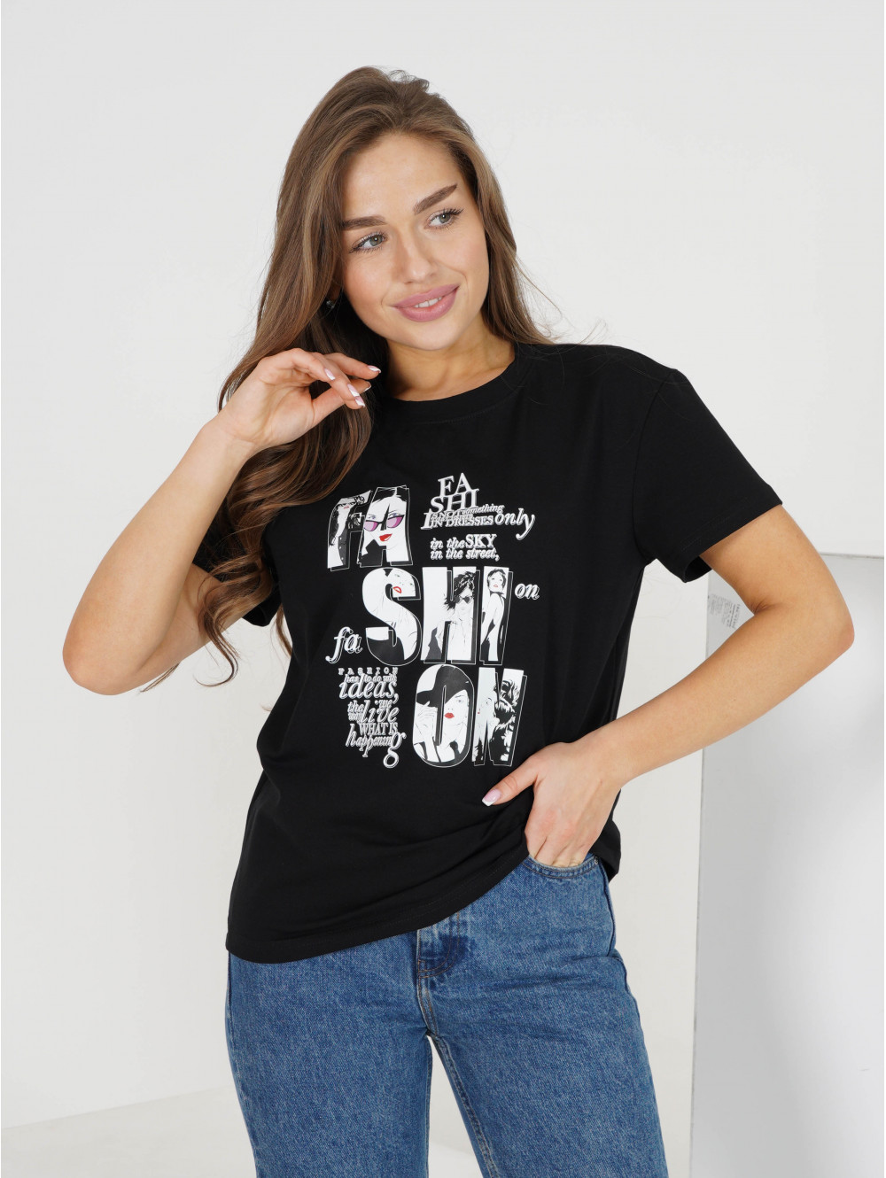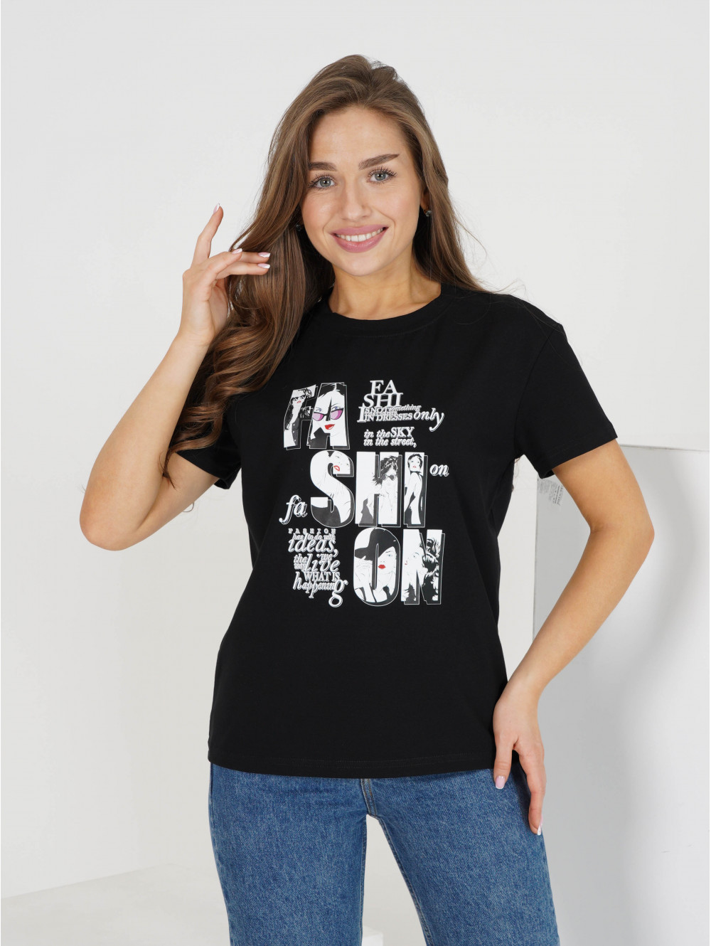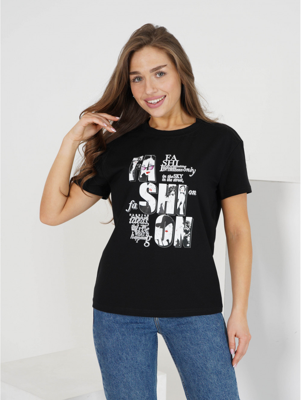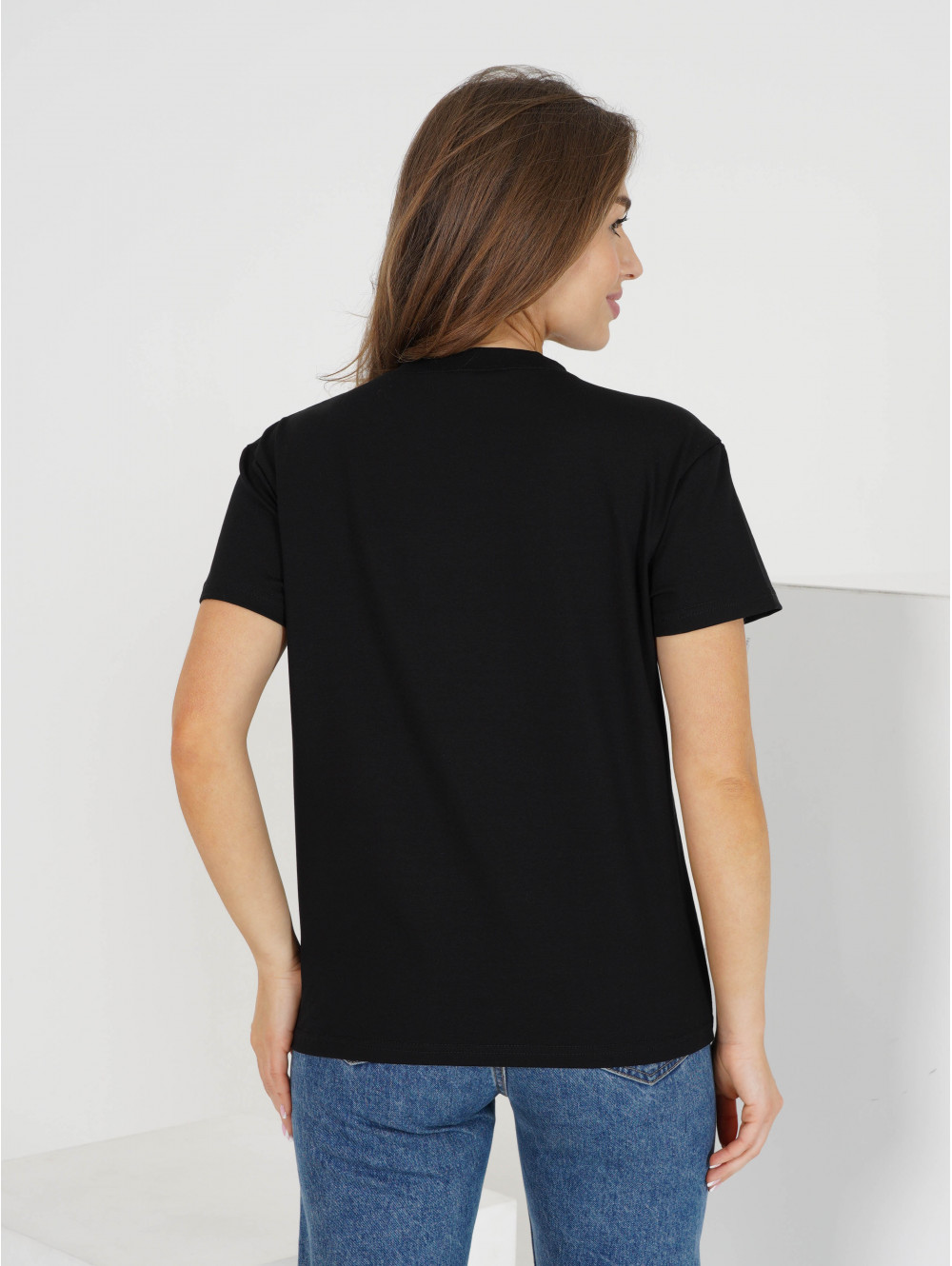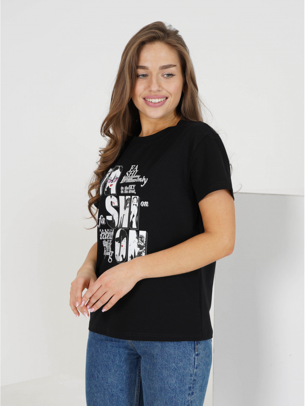 Футболка Презент прямого силуэта, со спущенным плечом и коротким втачным рукавом. На полочке - термопечать. Повседневная женская футболка в классической цветовой гамме. Базовый элемент гардероба.