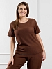 Футболка женская из гладкокрашенного трикотажного полотна «бурумчук», прямого силуэта, с короткими втачными рукавами, горловиной овальной формы, обработанной втачной планкой. По центру полочки ниже горловины - настрочен декоративный элемент-нашивка.