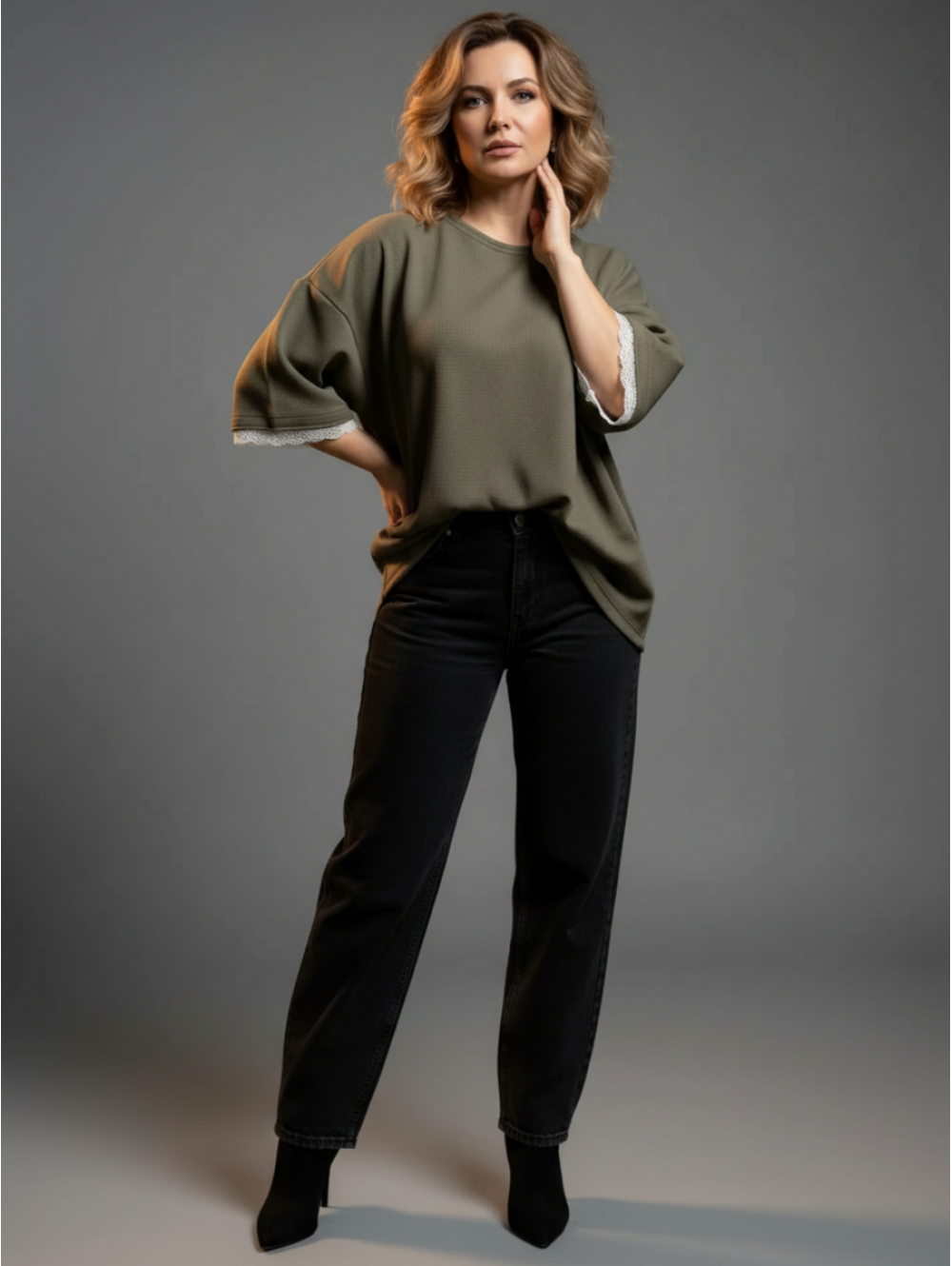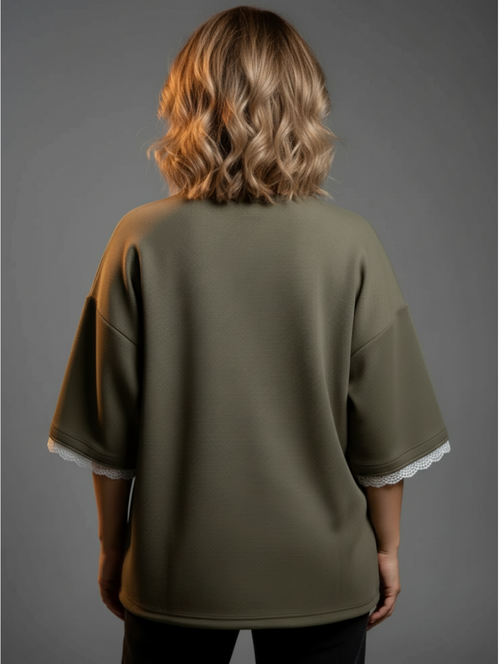 Романс — это футболка-настроение, которая соединяет в себе уютную расслабленность оверсайз кроя и изысканную женственность кружева.
