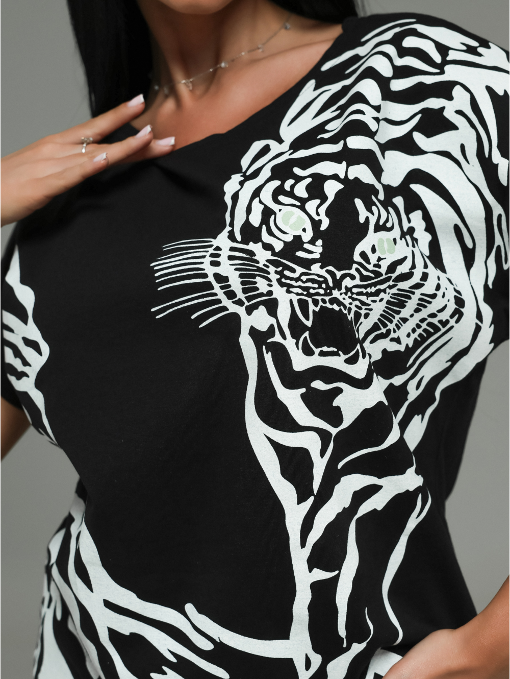 Футболка Сараби с цельнокроеным рукавом, выполнена из хлопкового материала кулирка. Изделие украшено оригинальным принтом.