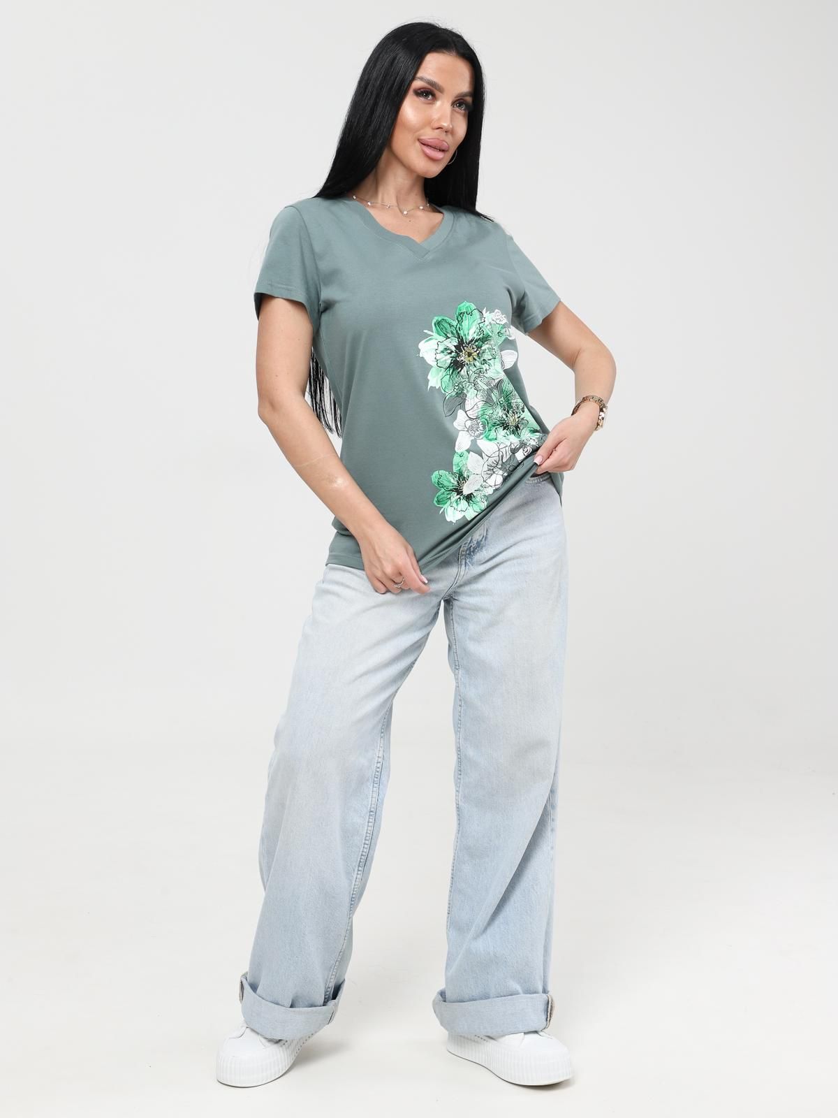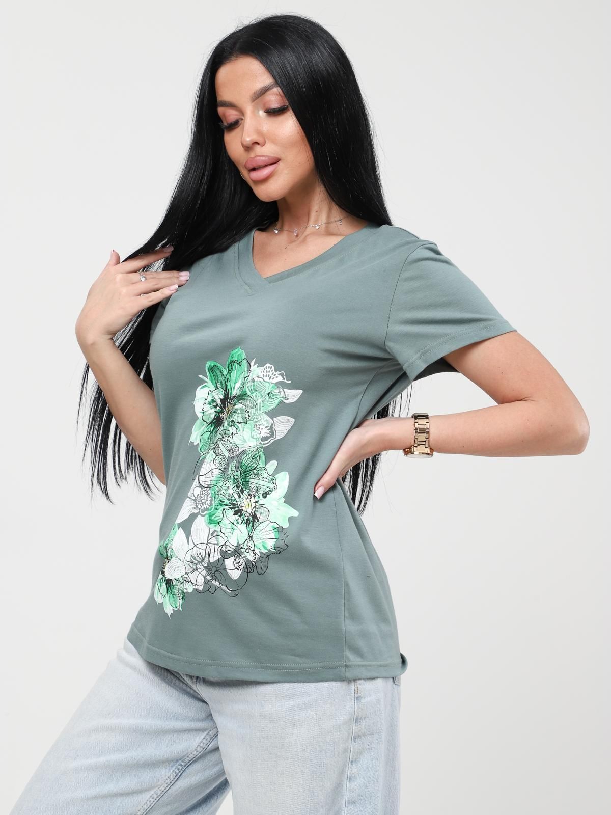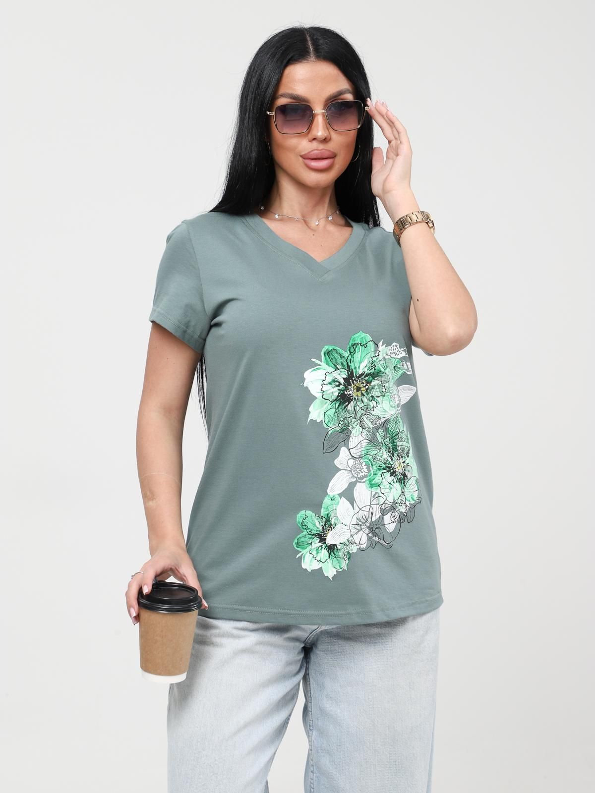 Стильная женская футболка из легкой хлопковой ткани.