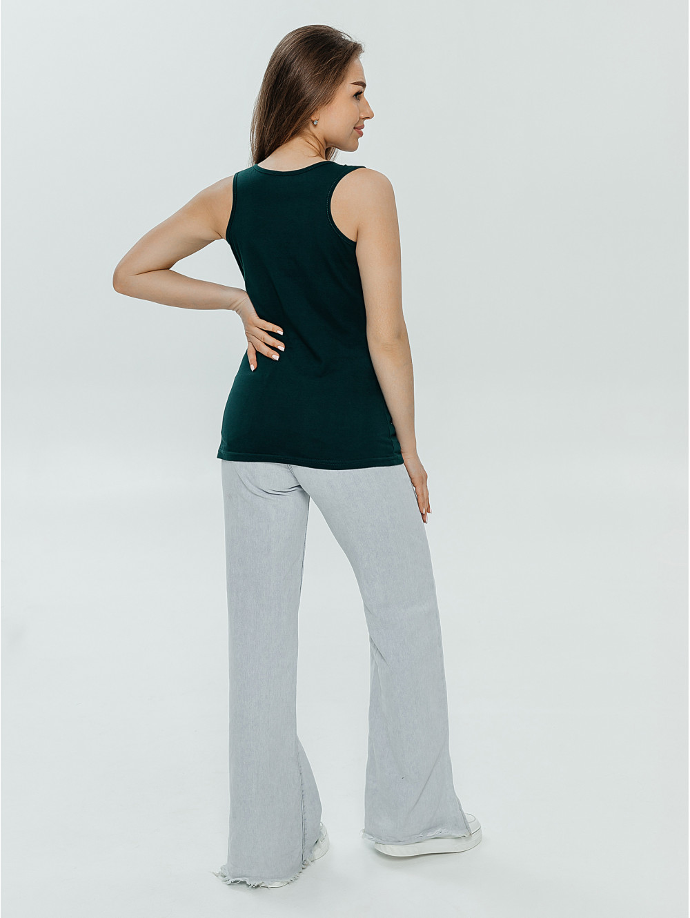 Майка на широких лямках является базовым элементом гардероба на каждый день.