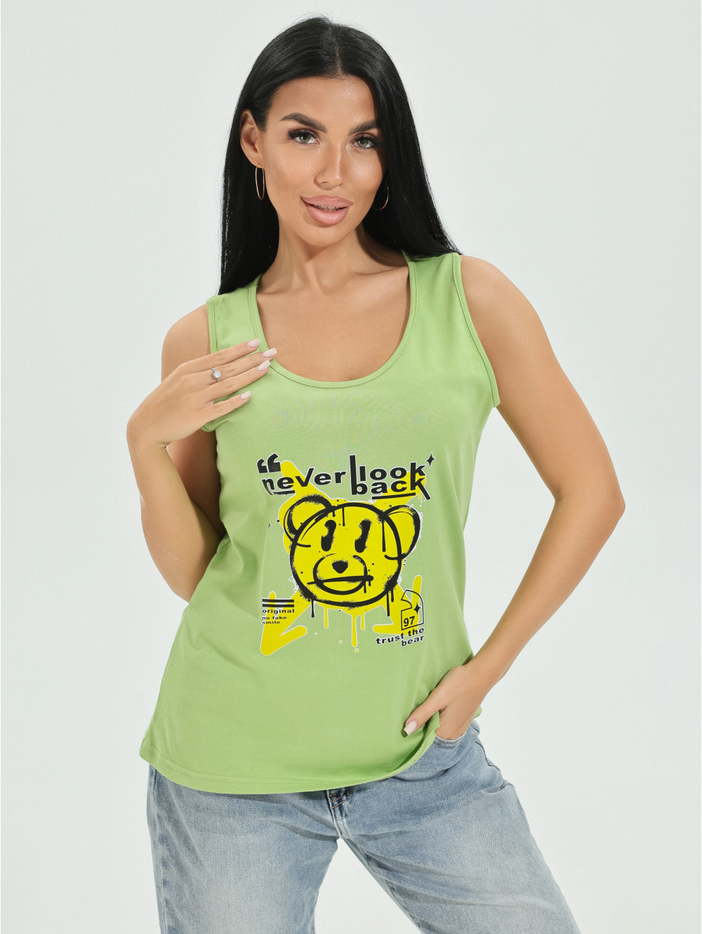 Майка на широких лямках является базовым элементом гардероба на каждый день.