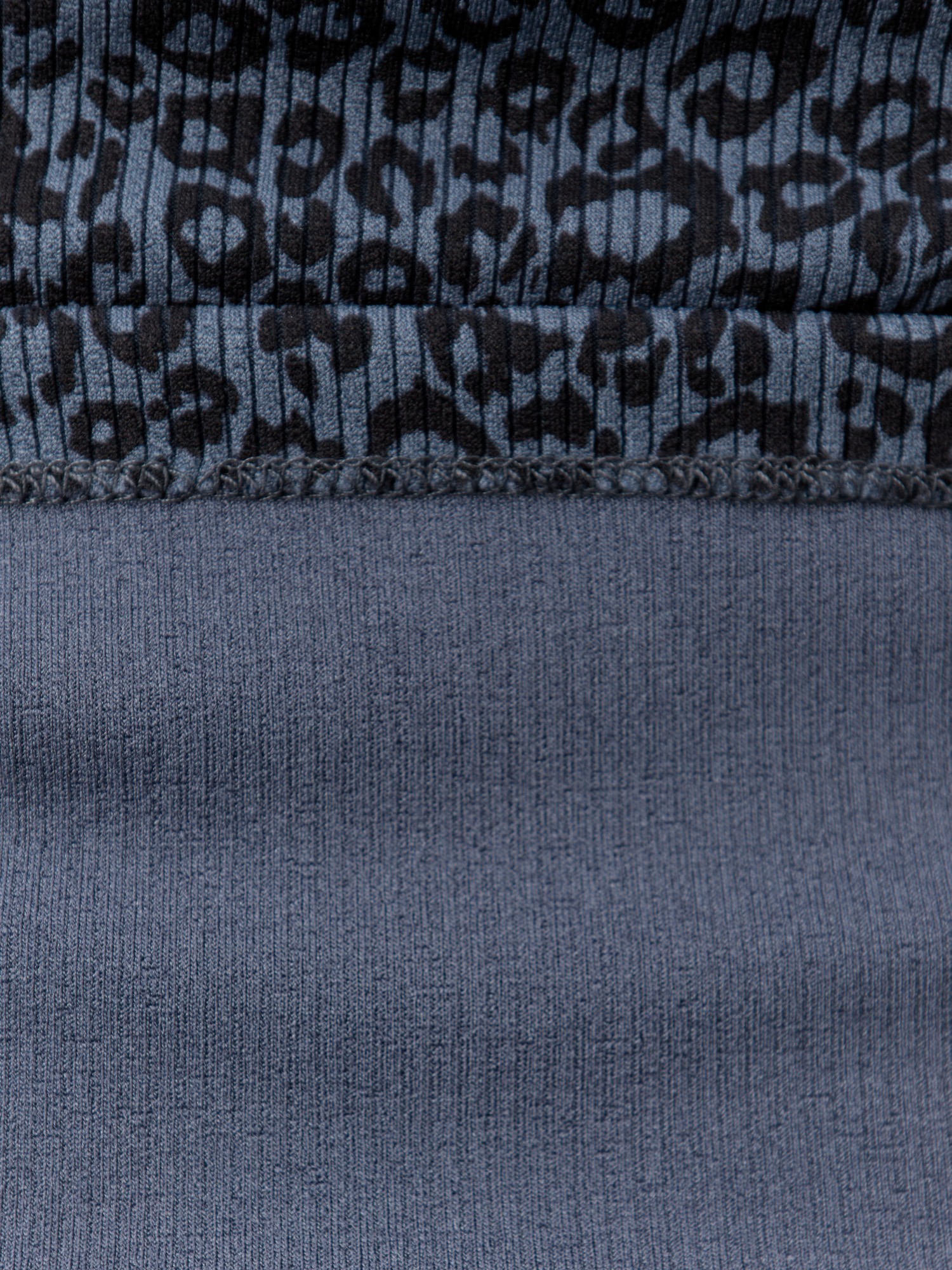 Майка молодежная из трикотажного полотна «рибана» с набивным «леопардовым» рисунком, средней длины, с о горловиной овальной формы. Проймы и горловина изделия обработаны притачными планками с отделочными строчками по швам притачивания.
